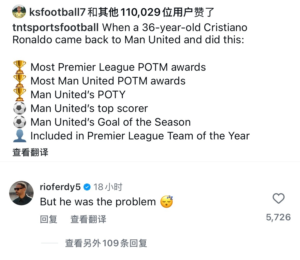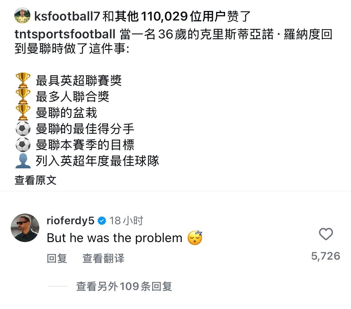 tntsports昨天总结了C罗在曼联二期数据南哥:但他们说他才是问题😴(对了