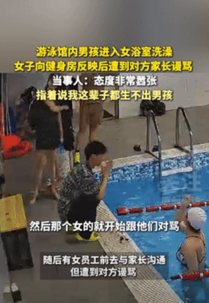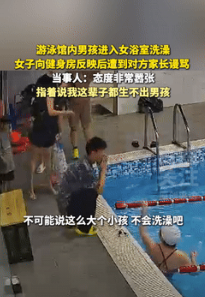 缺大德了!浙江湖州,一女子游完泳后去浴室洗澡,不料,有一位看起来八九岁的男孩突然闯进来,把女子给吓了一跳,立即向游泳馆反映,可当员工和男孩家长沟通时,对方的态度,却把众人给气到不行! 据百姓关注8月21日的报道,女子在泳池里游完泳之后,就准备去洗个澡然后回家,可正当她洗的时候,眼前突然出现一个男孩,这可把她吓得不行。 在仔细看过之后,发现男孩大概能有个八九岁,按理来说,这个年纪的孩子,应该是有一定的自理能力,独自去浴室,简单的冲洗下身体,应该是没问题的。 所以匆匆整理好后,女子就找到游泳馆的负责人,向其说了这件事情,而对方就尝试和男孩家长交涉沟通。 不过,家长的态度却让人十分生气,明明自家孩子犯了错,她不仅没有丝毫歉意,反而还辱骂负责人。 当动静闹大之后,经理也过来劝和,可是他也遭到了家长的辱骂,甚至包括女子都没幸免遇难,并且还诅咒她永远都生不出男孩, 至于事情的最后,则是游泳馆把家长办的卡给退掉,让她以后都不用来了,毕竟留这样一个祸害在,不知道要流失多少的客人。 不得不说,能摊上这样的家长,对于孩子而言,是件挺悲催的事情,家长都是一副泼妇的模样,或多或少都会影响到孩子的。 那么对于这件事情,您有什么想说的呢?