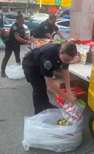 美帝警察“帮忙收摊”,周围一片祥和,不哭不闹。润出去之后这个乖哦,被收拾还要说谢