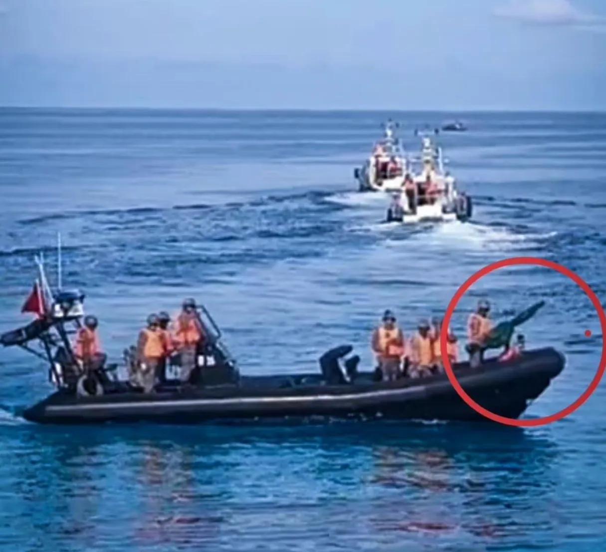 仁爱礁最新画面曝光:小艇架机枪,天上有飞机,海面有水炮 菲律宾武装部队近期发布了