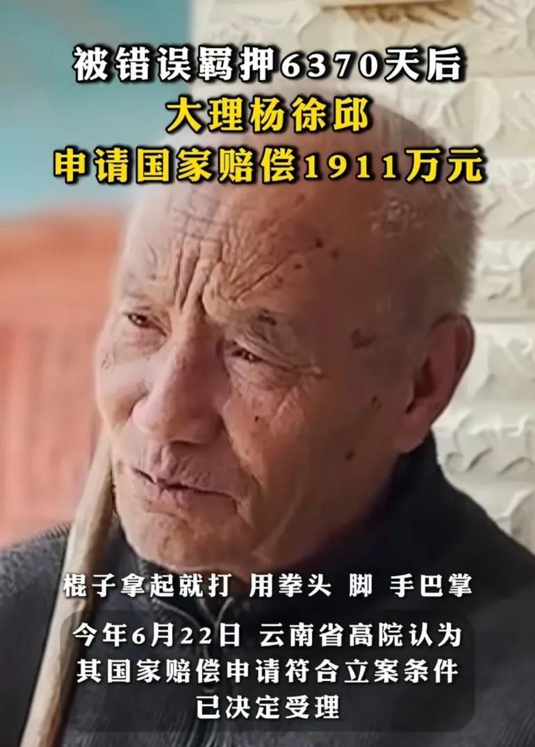 被错误羁押6370天后,大理杨徐邱申请国家赔偿1911万元,进去时正值壮年归来白