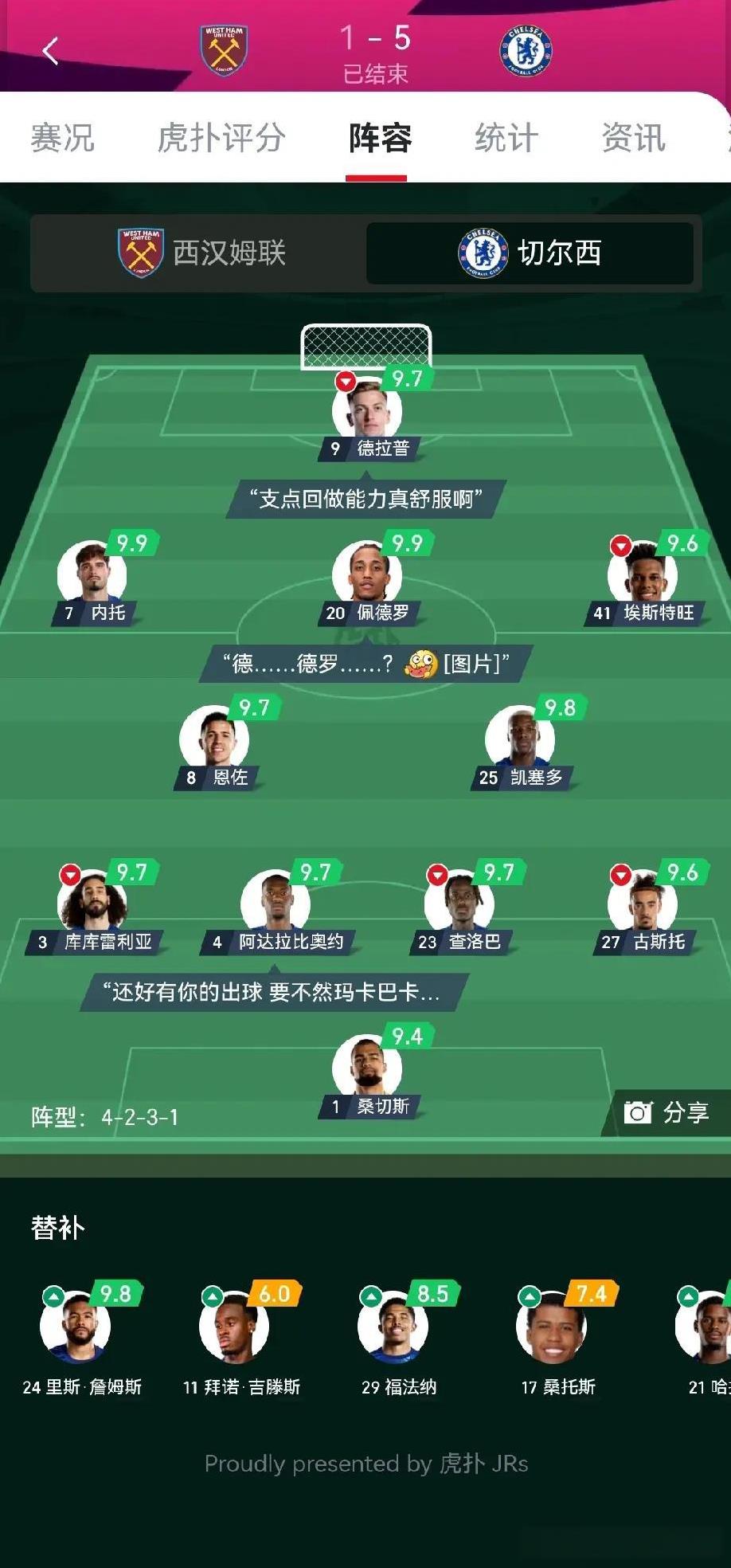 火力全开!难道这就是世俱杯冠军的含金量?这支车子真是强的可怕!一时不知道是老的切尔西太强了。还是波特的西汉姆太弱了。 感觉车子前场没了穆德里克和杰哥,都没人整节目了,一点乐子都没有了。[捂脸]还有就是缺谁谁尴尬,没帕尔默就是大胜,这下帕尔默首发的位置悬了。 没想到铁锤帮这赛季才打两轮就准备保级了啊,这教练换得是一个比一个菜啊。你说你为啥要赶走莫耶斯呢?从洛佩特吉再到波特,再这么搞真的要去英冠了。 看看波特能坚持到10月底不?我估计这赛季英超第一个下课的主教练就是波特。