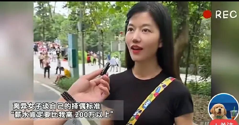 美女离异,自己带着一个女儿。但美女可不是一般老百姓,人家有自己的事业。好像是和美容行业有关,年收入可达80到100万。 所以她非常自信的说出了自己的择偶标准。她1.7米。男方当然要在1.75米以上——好像没毛病;自己收入客观,所以有资格要求男方收入,要求在200万以上。若单从收入上看,好像也没毛病。 除非这位年收入在200万以上的男士有着特殊的癖好,否则他怎么可能会去喜欢一个30多岁还带着孩子的女人呢?这个收入水平,就算这个男的40多岁了,要找一个20岁的小女生也不是件难事吧。 说到这里,其实很多看官也都想到了这位女士最适合找一个什么样的男士了。岁数大的收入少的她肯定看不上。那就只能找岁数小的了,图一头呗。 采访者向美女提出了自己的建议,结果美女还不乐意了。