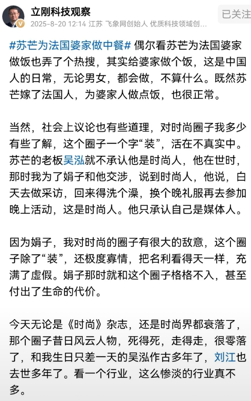 苏芒这次给自己打造贤妻良母的外宣,直接把自己独立女性的人设给翻车了,储殷和项立刚两位大V的评价都是一针见血,拳拳到肉!