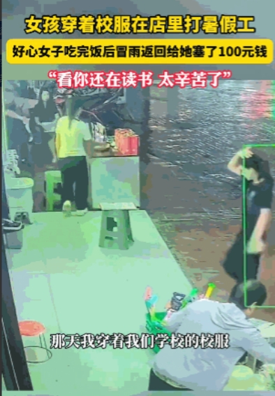 信息来源:《女孩穿校服在饭店打暑假工,女子吃完饭后冒着雨返回来给女孩塞了100元钱:看你还在读书,太辛苦了。女孩想找到姐姐,当面和她说声谢谢!》第1眼新闻