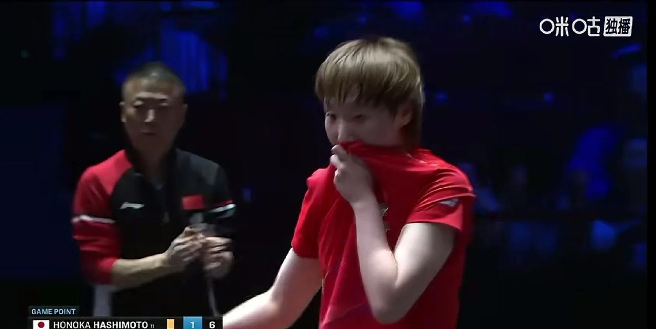 王曼昱对阵桥本帆乃香的这场比赛绝对是整个瑞典比赛中最最重要的比赛。 马琳坐在场外指导几乎就没有坐下过。几乎整场都是站着的。情绪价值绝对是满满的。 王曼昱赛后也说这场比赛非常重要,这是一场阻击战,自己是绝对不能输的。随着桥本帆乃香的最后一球出台,王曼昱举起胜利的拳头,我发现王曼昱腰间贴着伤贴。这可能是世界杯和陈幸同对阵,她腰伤退赛时那个位置吧。长达一个小时十几分钟的消耗战,又一天双赛的她,硬生生的抗住了。 王曼昱太坚强了。她身上有勇往直前的冠军的模样:得宠时波澜不惊,受挫时坚韧不馁;心内从无傲气滋生,唯存既定目标;行事不为逐利奔走,只因热爱滚烫。