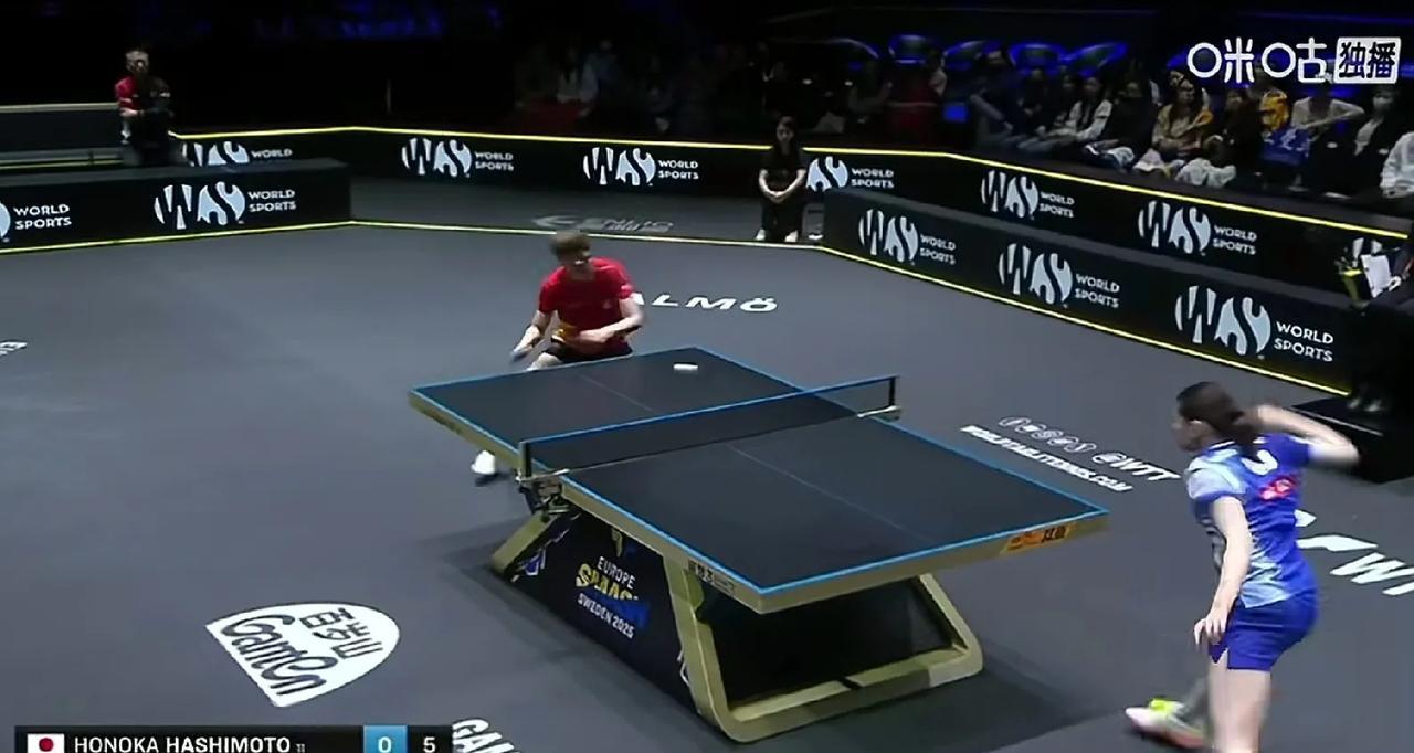 王曼昱对阵桥本帆乃香的这场比赛绝对是整个瑞典比赛中最最重要的比赛。 马琳坐在场外