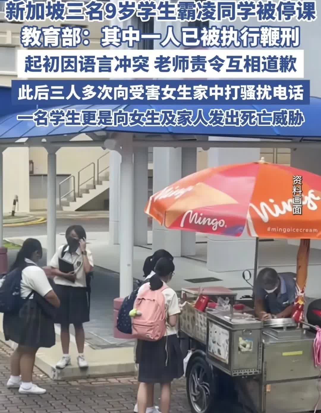 点赞!新加坡9岁霸凌者被鞭刑停课!这才是真保护未成年人! 新加坡康林小学3名三年级学生长期霸凌同学,不仅言语侮辱、骚扰电话,甚至发出死亡威胁并造成身体伤害。 校方查实后果断处理,三名学生全部停课,其中一名施暴者被处以鞭刑,家长被要求严加管教。 此案中,受害女生的母亲态度鲜明:“若我的孩子有错,我绝不袒护”,她坚持追究到底,拒绝孩子还小的借口。 新加坡教育部和校方也明确反对欺凌,但同时呼吁理性处理,避免网络情绪发酵。 值得思考的是,霸凌者年龄再小也不等于无责,新加坡的鞭刑+停课组合拳让施暴者付出实质代价;家长不护短、学校不敷衍,才是对受害者真正的保护;反对和稀泥式处理,霸凌事件中若只强调互相道歉,实则是纵恶欺善。 未成年不是逃避惩罚的挡箭牌,严惩施暴者才是对善良孩子最大的公平!