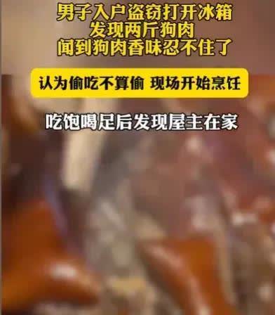 江西,男子看中一家大户人家,他深夜爬进去偷东西,结果肚子饥肠辘辘,他打开冰箱,发现两斤狗肉,他忍不住狗肉发出的香味,就煮来吃了,吃饱喝足才开始翻箱倒柜,结果客厅一无所获,等他来到卧室,竟发现屋主正在侧着身呼呼大睡,他吓了一大跳,赶紧逃跑,被抓的时候,他却大呼:偷吃不算偷。 2024年12月3日晚上,江西有个叫吕某的小伙,因为手头紧,就动起了歪脑筋,打算趁着夜深人静去别人家“借”点东西。可谁承想,这事儿最后竟因为一个让人哭笑不得的理由火了。 那天晚上,吕某偷偷摸摸翻墙进了彭某家,打算好好“捞”一笔。可刚一进屋,肚子就开始咕咕抗议了。他一瞅见冰箱里放着一盘香喷喷的狗肉,实在是忍不住,干脆起锅烧油,把狗肉炒了炒,大吃了一顿。酒足饭饱之后,他才想起自己的“正事”,结果客厅翻遍了,啥值钱的玩意儿都没找到。不甘心的他溜达到卧室,结果差点没吓死——彭某正呼呼大睡呢!吕某吓得撒腿就跑,逃跑时还顺手把客厅的摄像头给摘了。他自以为做得神不知鬼不觉,哪知道彭某家里还有别的监控,把他的一举一动都拍下来了。警察很快就找上门把他抓了。 被抓后,吕某还一脸冤枉地说:“我就吃了点狗肉,又没偷别的东西,这哪儿算偷啊!”可法律可不是这么讲的,进别人家偷东西,不管偷到多少,都是犯罪。结果,吕某被判了五个月拘役,还得交一千元罚款。就为了那两斤狗肉,他丢了五个月的自由,这代价可真是太大了。