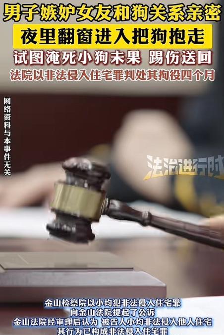 离大谱!上海,一男子发现女友,与其宠物泰迪狗关系异常亲密,吃饭睡觉都抱着,男子起了嫉恨之心,认为狗是第三者,深夜翻窗进入女友家,偷走泰迪丢进河里,还将狗踢伤,女子得知后怒而报警,结果男子竟因此被判刑! “嫉妒心这么强?我跟他谈个恋爱关我养的狗什么事,他凭啥想弄死我的狗!” 小红(化名)愤怒的声音里,满是难以置信。谁能想到,一场恋爱竟然会因宠物狗而起的风波! 根据8月12日的报道,小红和小昀(化名)是通过社交软件认识的,两人吃过几次饭。单身的小红家里洗衣机故障时,小昀还上门帮忙修理过。接触中,小昀对小红有了好感,本以为关系能慢慢升温。 两人确定关系后,小红养的那只泰迪狗,成了小昀心里的一根刺。小红和狗感情特别深,不管吃饭还是睡觉,都把狗抱在怀里。这让小昀觉得,宠物狗像 “第三者”,挡在他和小红中间。 时间一长,嫉恨的种子在小昀心里发了芽。一天深夜,小昀偷偷摸到小红家。他熟门熟路翻窗进了屋,目标很明确 —— 把那只泰迪狗弄走。趁着夜色,他抱走狗就跑,心里想着要给这 “第三者” 点颜色看看。 出了门,小昀带着狗来到河边,竟想把狗直接丢进河里淹死。可真把狗扔下去后,他又开始心虚、不忍,折腾一番,又把狗捞上来。 这还不算完,满心怨气的他,对着可怜的泰迪狗一脚踢过去,狗瞬间受了伤。做完这些,小昀慌慌张张把狗送回小红住处,扔在一楼后,自己赶紧跑了。 小红发现狗受伤,又听邻居说看到可疑人影,当下报了警。警察一查,很快锁定小昀。面对询问,小昀没法抵赖,把自己因为嫉妒,翻窗偷狗、丢河、踢伤的事儿全说了。 没多久,金山检察院以小昀犯非法侵入住宅罪,向法院提起公诉。法院审理认为,小昀非法闯入他人住宅,行为已经构成犯罪,不过他到案后如实供述,能从轻处理。最终,金山法院判小昀拘役四个月 。 事儿一出,网上炸开了锅。 有网友说:“这男的太极端了,说是嫉妒,其实只是给自己想要施虐的行为找一个借口而已!” 也有网友表示:“真的有人嫉妒狗,我爸就嫉妒我的狗,本质是对我的钱和时间有占有欲,所以会天天骂我的狗,而且,我上班回家,只要他先回来看到地上哪里脏,就要使唤我干活,但事实是他不讲我也会每天拖地,但他就是这么恶毒的要说一嘴。” 这事儿让不少人明白,嫉妒心一旦失控,做出违法的事,迟早要付出代价。遇到感情问题,得用理性方式解决,别让情绪左右,干出害人害己的傻事。 生活里,人和人、人和宠物的感情交织复杂,但法律的底线绝不能碰。毕竟谁也不知道,一时的荒唐举动,会给自己和别人的生活,带来多大的冲击。 对于这件事情,你们怎么看?
