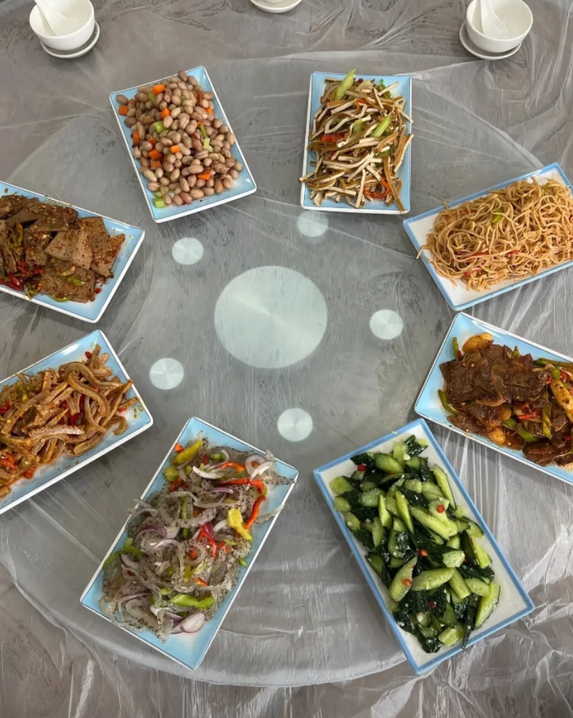 把那个炒焖子还是啥的换成凉拌牛肉这八个盘子才算正式