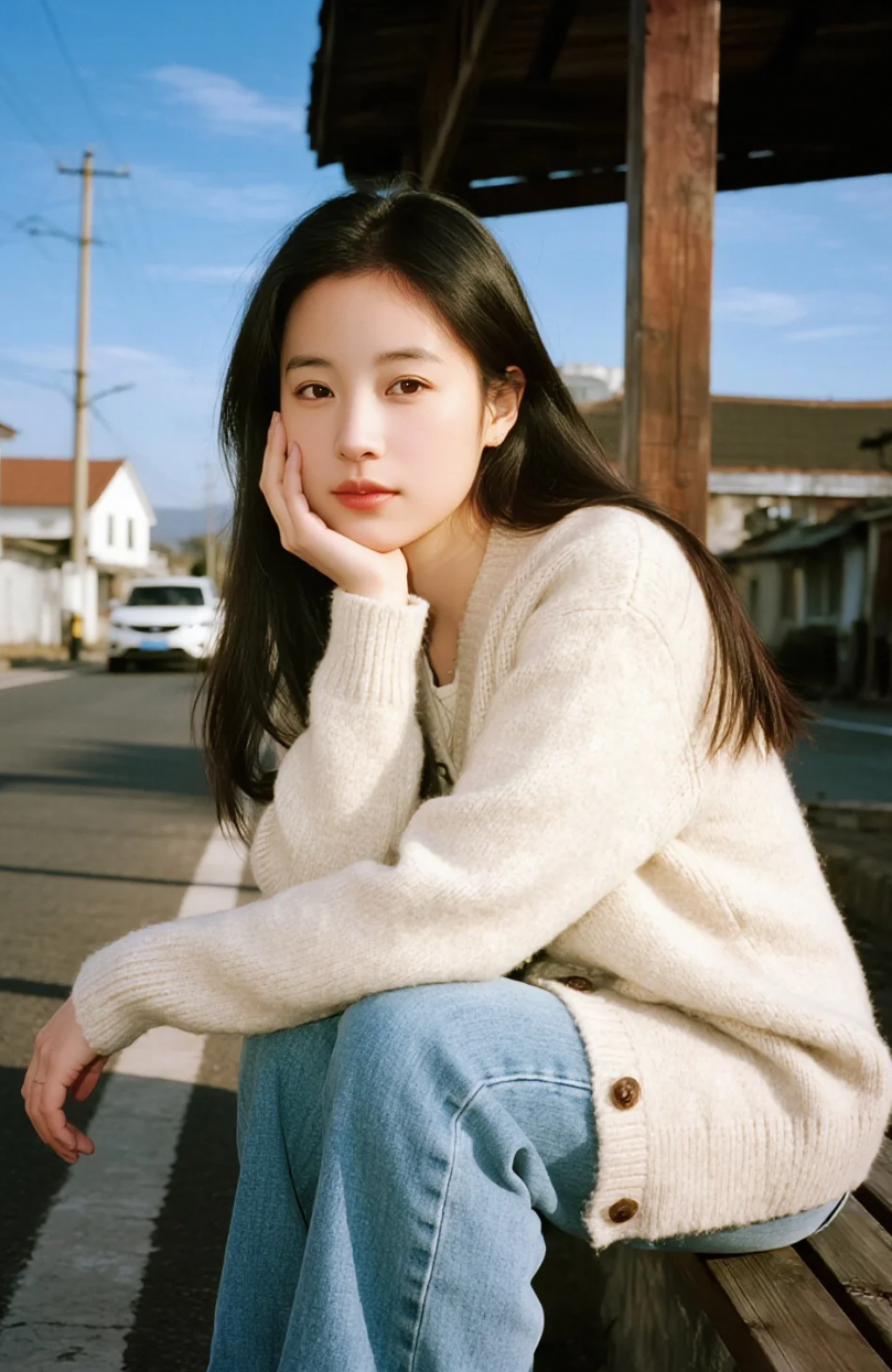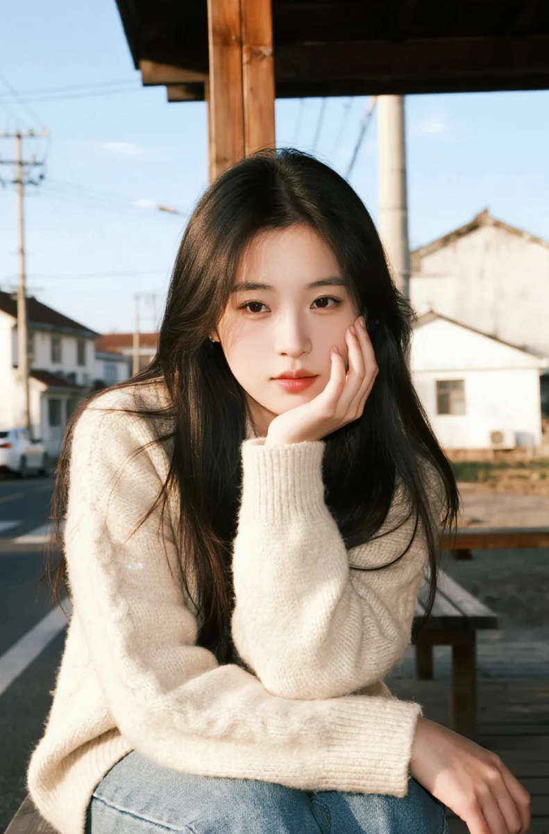 托腮一瞬,眼神温柔,像风也学会了轻声说话