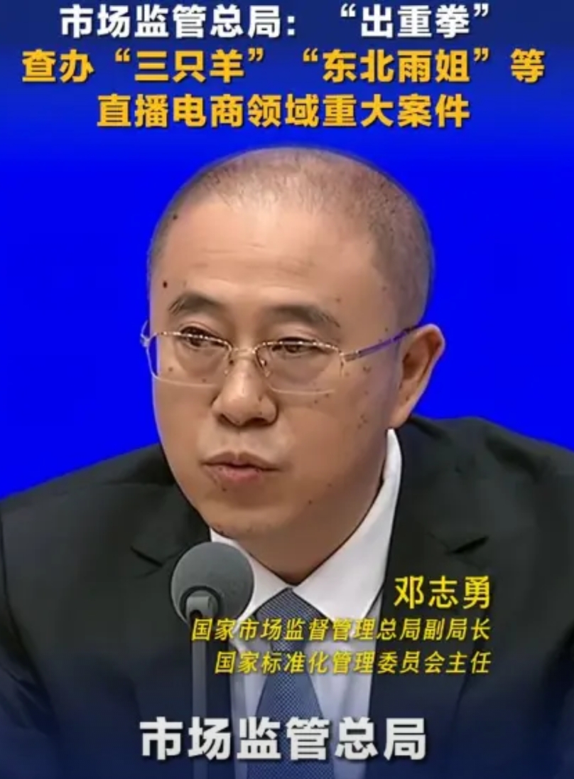 近日,国家市场监督管理总局副局长邓志勇:将对网络直播乱象出重拳。 会同有关部门持续开展网络监管专项行动。加大执法监管力度。查办了三只羊,东北雨姐电商领域重大案件。给电商直播领域敲响了警钟。