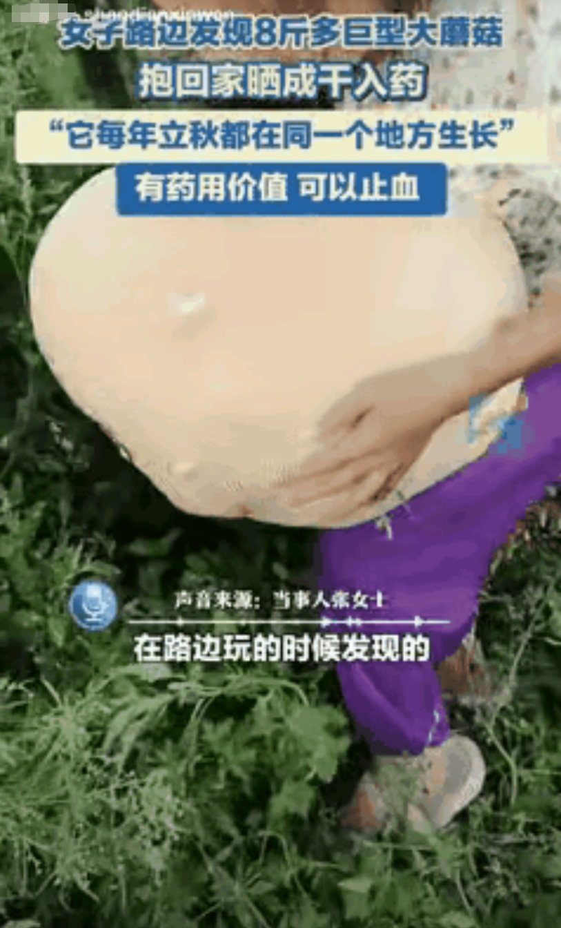 “这都是命啊!”黑龙江齐齐哈尔市,一女子在路边玩的时候,发现有颗重量高达8斤多的蘑菇,女子表示它有药用价值,可以止血,她打算抱回家晒干入药,网友:这就是大自然的馈赠! 信源:闪电新闻 在黑龙江齐齐哈尔的路边草丛里,居然藏着个8斤重的“白胖子”! 不是什么稀罕水果,也不是啥人工道具,而是一朵实打实的巨型蘑菇,圆滚滚的像个小皮球,抱在怀里都费劲。 发现它的张大姐说,活了这么大,还是头回见这么大的野生蘑菇。 这事说起来挺巧。 那天张大姐路过家附近的荒草地,眼尖的她瞥见草丛里露着点白花花的东西。 “一开始以为是谁丢的塑料泡沫,走近了才发现不对劲。”她从小跟着父母上山采蘑菇,对各种菌子也算眼熟,可这草丛里的大家伙,还是让她愣了半天。 拨开半人高的杂草,一朵洁白的大蘑菇露了出来——菌盖又圆又厚,摸上去软乎乎的,菌柄粗得像小胳膊,整个蘑菇稳稳地扎根在草丛里,看着就扎实。 张大姐蹲下来试了试,单手居然抱不动,得两只手捧着才能慢慢挪起来。 “当时就觉得稀奇,以前在这路过也见过类似的白蘑菇,但最大的也就两三斤,这玩意儿看着得有好几斤重。” 抱着蘑菇回家的路上,张大姐心里还直打鼓。 荒郊野岭的,怕被别人瞧见,走几步就回头看看,活像揣着个宝贝。 到家往秤上一放,指针“噌”地就转了过去——不多不少,整整8斤! 她举着蘑菇跟家人说这事儿,家里人都围过来看稀罕,“长这么大,谁见过这么大的蘑菇啊,这要是炖了汤,够一大家子喝好几天了。” 但张大姐没打算把它下锅,她打小就认识这种蘑菇,当地老人都叫它“蘑菇包”或者“马粪包”,每年立秋前后,在杂草多的地方总能瞧见几棵。 “这东西不光能吃,还是个‘小药箱’呢。”她说着就指了指蘑菇的断面,“以前村里谁磕着碰着流血了,摘片新鲜的敷上,没多久血就止住了,比创可贴还管用。” 她琢磨着,超市里普通蘑菇有的是,犯不着把这么稀罕的大家伙炒着吃。 可家里最近也没人受伤需要止血,这8斤重的蘑菇该咋处理?思来想去,她有了主意——晒干了存着。 说干就干,她先接了盆清水,小心翼翼地把蘑菇表面的泥土和草屑洗干净,那圆滚滚的样子,洗的时候都怕给捏坏了。 接着找出家里最大的菜刀,把蘑菇切成薄薄的小片,摊在院子里的竹筛上。 阳光好的时候翻一翻,没几天就晒成了黄白色的干货,装在纸袋子里,闻着还有股淡淡的菌香。 “这样存着,啥时候家里或村里有人需要止血,拿出来泡一泡就能用,比新鲜的还耐放。” 张大姐越看越觉得这蘑菇稀罕,就拍了几张照片发到网上,有刚挖出来的“全身照”,也有切片晾晒的“过程照”。 没成想,评论区直接炸开了锅。 “我的天,这蘑菇成精了吧?比我家煲汤的锅都大!” 有网友发来一连串惊叹的表情,说自己这辈子见过最大的蘑菇也就拳头大,这8斤重的简直像从童话里跑出来的。 更多人好奇这蘑菇的“止血神效”:“真有这么厉害?平时磕破皮敷上就管用?” 还有人开玩笑说:“这哪是蘑菇啊,分明是大自然给发的红包!” 不过评论区里也有不少“清醒党”。 有网友提醒:“野生蘑菇可不能瞎采,长得再好看也得先认清楚品种,万一遇到有毒的,那麻烦可就大了。” 还有人说:“草丛里说不定藏着毒虫蛇蚁,摘的时候可得小心,别为了个蘑菇伤着自己。” 张大姐看到这些评论也连连赞同,她说自己敢采这蘑菇,是因为从小就认识,知道它没毒还好用,换作不认识的品种,给她再多钱也不敢碰。 “咱普通人不认识蘑菇品种的,千万别随便在野外摘,尤其是颜色鲜艳的、长得奇形怪状的,看着再诱人也得忍住。” 其实啊,这路边的巨型蘑菇之所以让人觉得新鲜,不光是因为它个头大,更因为它藏着大自然的小惊喜。 但惊喜归惊喜,咱们在野外遇到不认识的植物,还是得多留个心眼——就像网友说的,欣赏可以,别轻易动手,毕竟安全永远是第一位的。 你说要是哪天你在路边遇到这么个“白胖子”,会像张大姐一样把它带回家吗? 不过可别忘了,先确认它是不是“靠谱”的蘑菇哦!