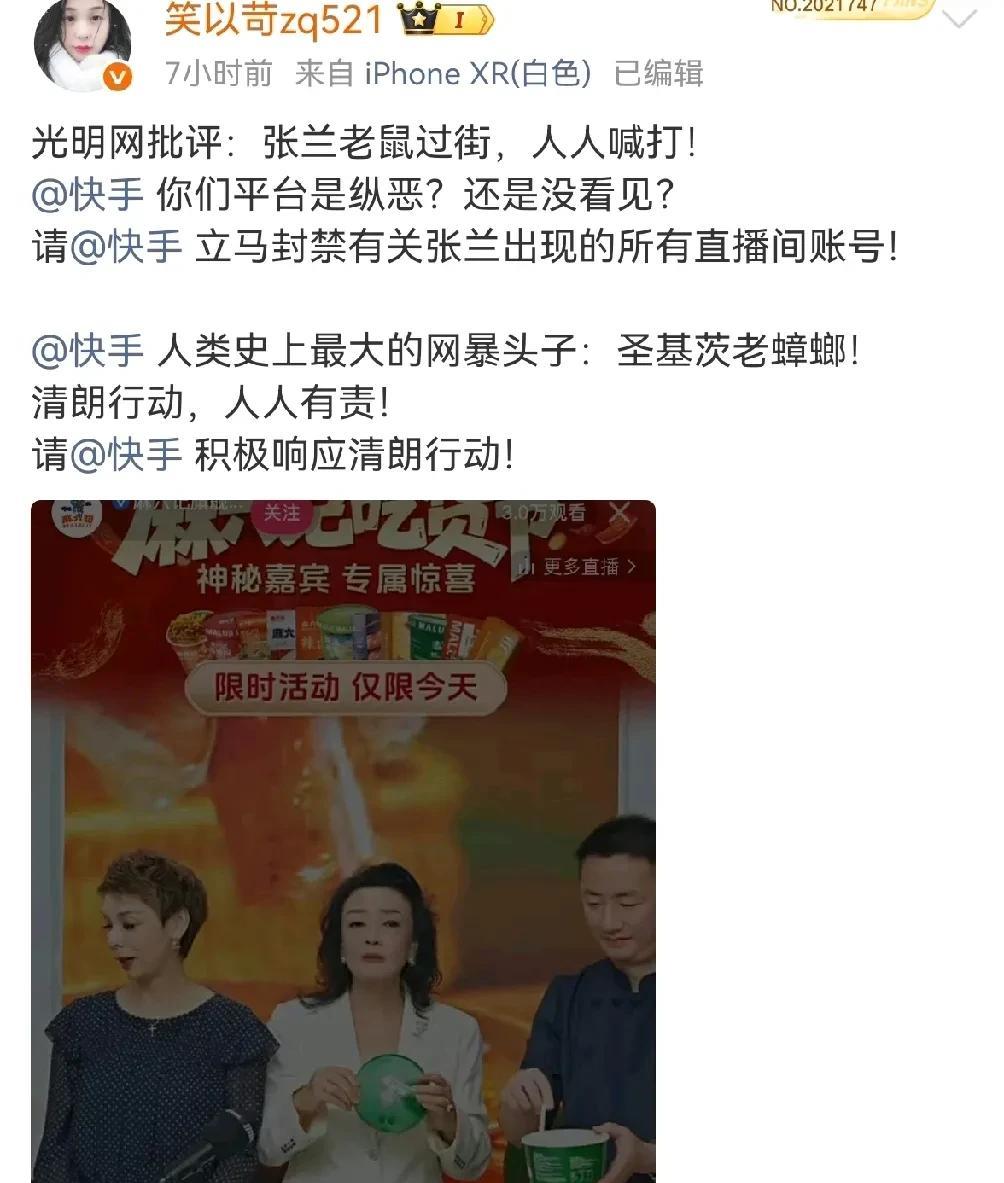 张兰这是唱哪出,时隔大半年开播,开播就生气,发火,把员工现场辞退了! 事情是这样的,8月23日,张兰在慢脚”开播,久未露面,张兰直播也十分卖力,又是试吃产品,又是跳舞活跃气氛,六十多岁的人了,真的很拼,说话都有点喘了,可是眼光毒辣的张兰,观察到一个员工工作不在状态,进进出出的,这是她还在的情况下都这个样子,可想而知她不在会啥样。 张兰是个藏不住事的人,一个没忍住,当场告诉那个员工,别在那比划了,看看你的业绩,看看你松松散散的样子,今天第一次见你,你就没踏踏实实管理过,你可以做交接了,吓得身边的老总洋洋赶紧说下来我跟她沟通。 其实,张兰可以等下播后再处理自家的事,这刚开播就怒目圆睁的,让黑宝宝趁虚而入了,笑某人连发数条博文,呼吁网友去ju bao,这是死磕到底的节奏呀!
