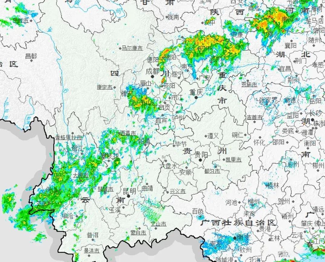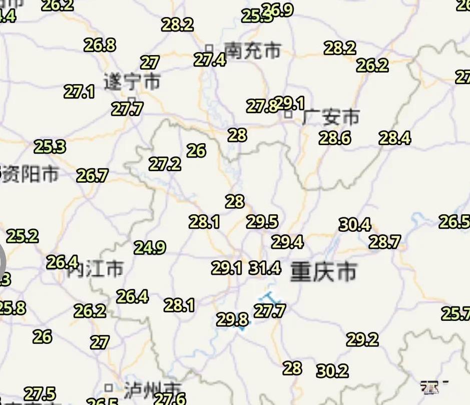 从今天的天气形势图实况来看,今天副热带高压依然强势,不仅是华南广东、广西,北至山东一带,西到四川、重庆一带都有副热带高压的影响。 不过因为四川中东部到重庆一带低空850 百帕有一个涡旋环流系统,因此四川东东部到重庆一带今天的天气还算舒服。 从高空 200百帕流场来看,新疆到青海一带还有陆地高压层! 天气图显示海南南部海域还有今年第13号台风“剑鱼”。 从850 百帕流场图来看,今天四川中东部到重庆一带有一个涡旋环流系统,四川巴中一带刚好处于涡旋环流东北侧切变区,在今天上午的最新卫星云图上四川中东部、重庆云量较多。 除此之外贵州西部、云南一带云量相对也较多。 安徽、江苏、浙江、福建、江西、湖南一带云量较少,天气非常晴好。 从雷达回波图来看,云南大理、保山,四川乐山、巴中,重庆城口、河南南阳一带有一些降雨。 今天上午10点钟,受低涡环流的影响,重庆主城沙坪坝温度31.4 度,重庆垫江温度28.4 度,四川自贡只有25.8 度,南充温度27.4 度。 从今天上午10点的全国温度排行榜来看,江苏常州、江西九江温度都是36.2 度,分别位居第一和第二。 炎热的一天又开始了,大家要注意防晒避暑。