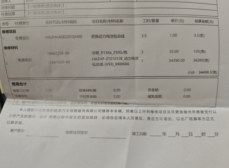 我也免费换过电池,对比亚迪来说,主要成本是工时费和运费,电池回厂修复就行。现在本地建了电池维修基地,运费可以忽略了。