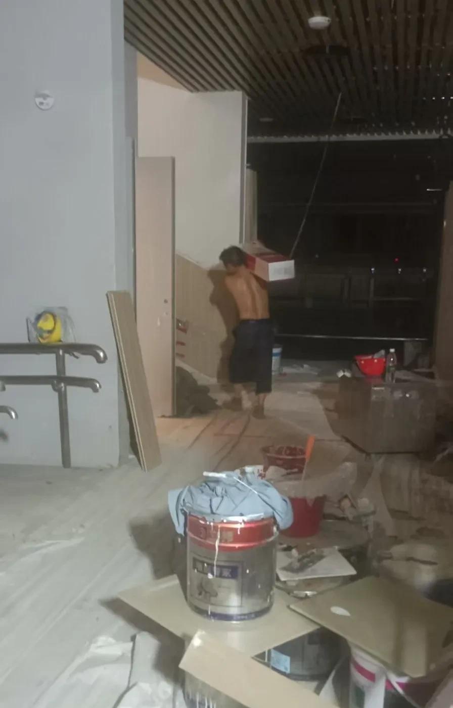 这些一箱箱的都是木地板,从1楼扛上到3楼,扛一箱5块钱,这样的活,都有人抢着做。