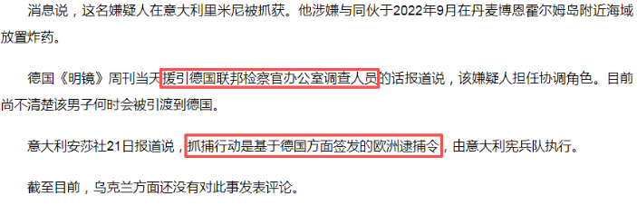 乌克兰这下越发完犊子了,乌友的天都塌了! 当年鸡着脖子硬喊是俄罗斯自己炸了北溪的那么一群人,现在看到北溪元凶,直接被意大利给抓了,猪煮熟了,只有嘴是硬的! 意大利警方零帧起手,直接把这名乌克兰参与北溪破坏的49岁老汉给抓了起来。 先不要急,这事并不是意大利警方主动干的,和梅洛尼老太妹关系不大。主要是德国联邦检察院先发了“欧洲逮捕令”,然后意大利警方才开始的抓捕! 而且,抓捕的情况是这样的,这位乌克兰49岁特工组老汉,目前在意大利海岸休假,然后就去住酒店。结果身份信息一输入,居然是欧洲通缉犯! 于是,意大利警方就把这个人给抓了。估计意大利刚抓人的时候也不知道是这么一块烫手山芋。当年丹麦是直接退出调查,波兰方面是故意放走了嫌疑人!只有德国在坚持要求查下去! 德国估计是抓完才告诉意大利——这是北溪元凶! 人还没移交呢,德国就先把这事给捅出来了,拿着大广播告诉全世界,是乌克兰炸了北溪! 这事一出,德国右翼选择党直接就跳出来要求冻结援乌。 默茨刚刚还在军援乌克兰,现在德国内部马上就跳出这档子事。德国确实有点难做了! 默茨虽然是德意志总理,但管不了德国联邦最高法院。估计是反援乌的德国司法体系的人联手选择党开始动了! 有些真相,你不追问还好,追问到底就很容易让人尴尬!你说援助乌克兰?现在乌克兰已经被查明了就是炸北溪的凶手! 不援助吧,德国不动了,乌克兰还拿什么打哦! 俄乌谈判停火的关键谈判时期,德国内部来这么一下,欧盟估计人都要裂开了! 美利坚内斗挺有意思,象党联合欧洲本土的右翼,驴党联合欧洲本土的皿煮派!来吧,我要看血流成河!