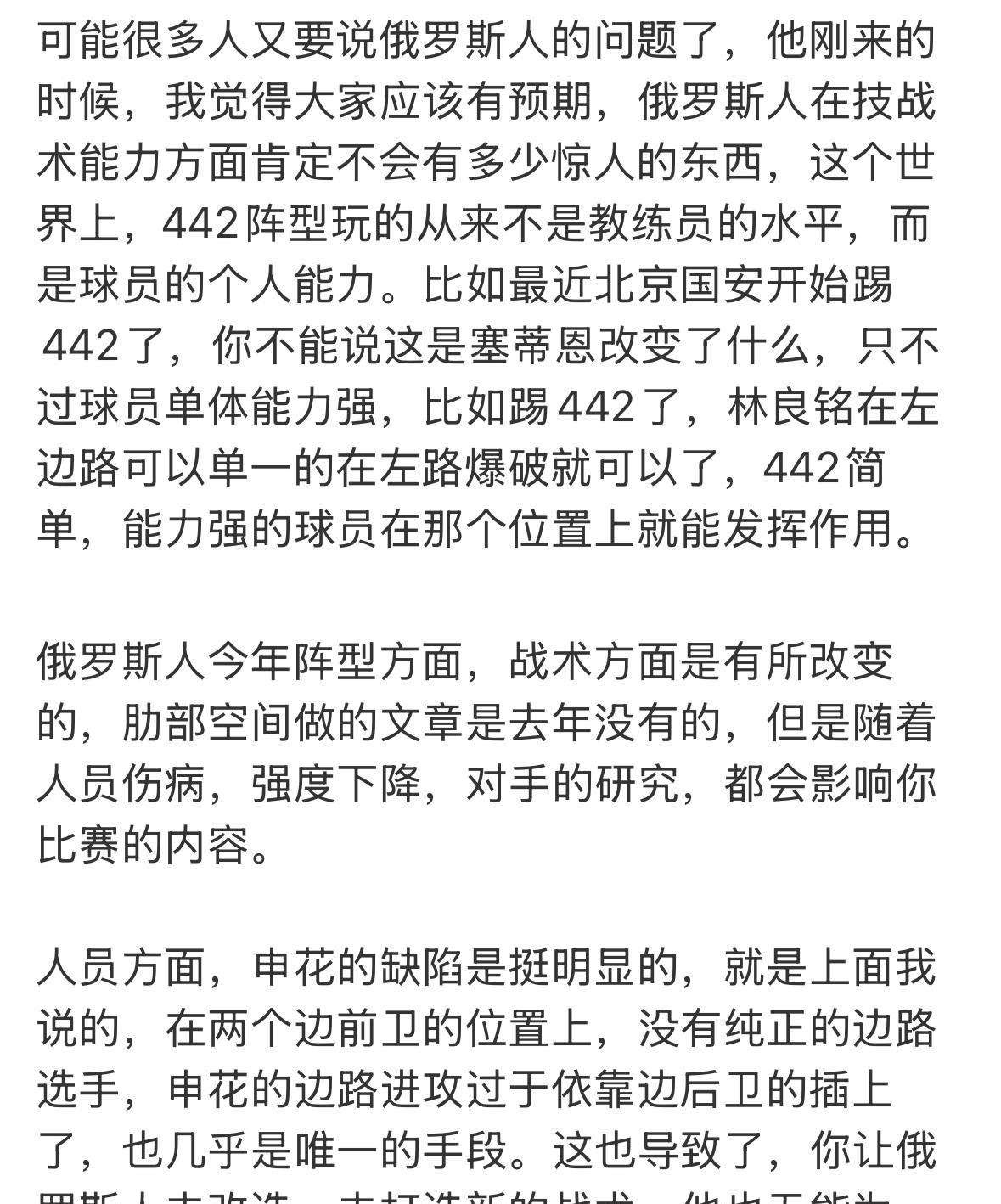 媒体人徐江今天发了一篇长文,指出了上海申花当前存在的一些问题。 首先,申花队之前赢球主要是依靠比赛强度拉爆对方。现在赛事密集,体能有点吃不消了。 其次,阿苏埃的球风不太适合申花队。 最后,申花队缺少犀利的边路球员,影响了主教练斯卢茨基的战术布局。