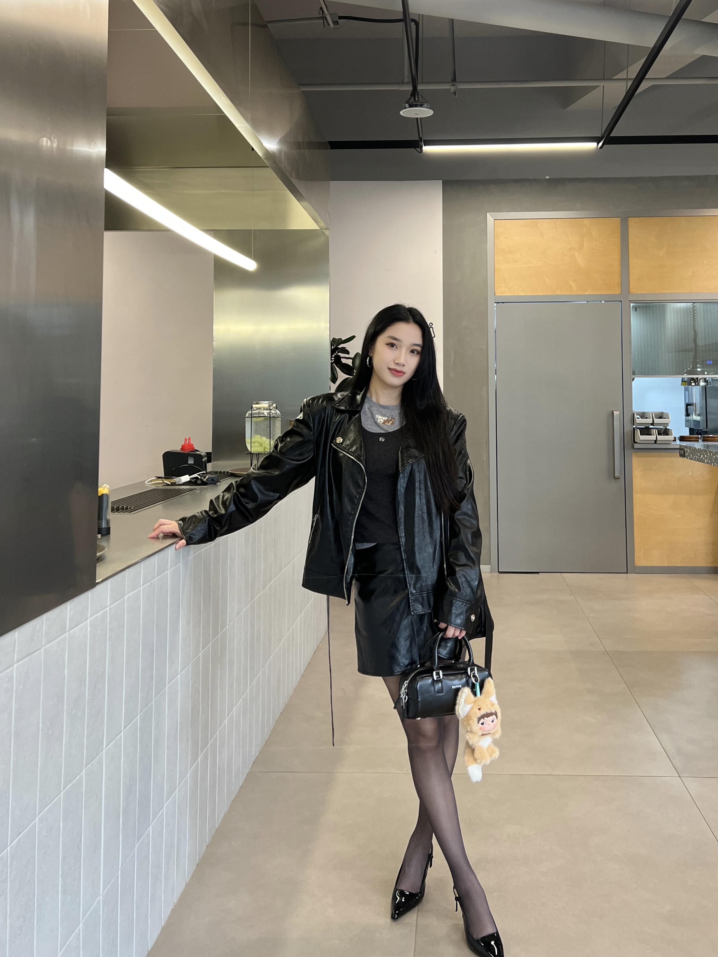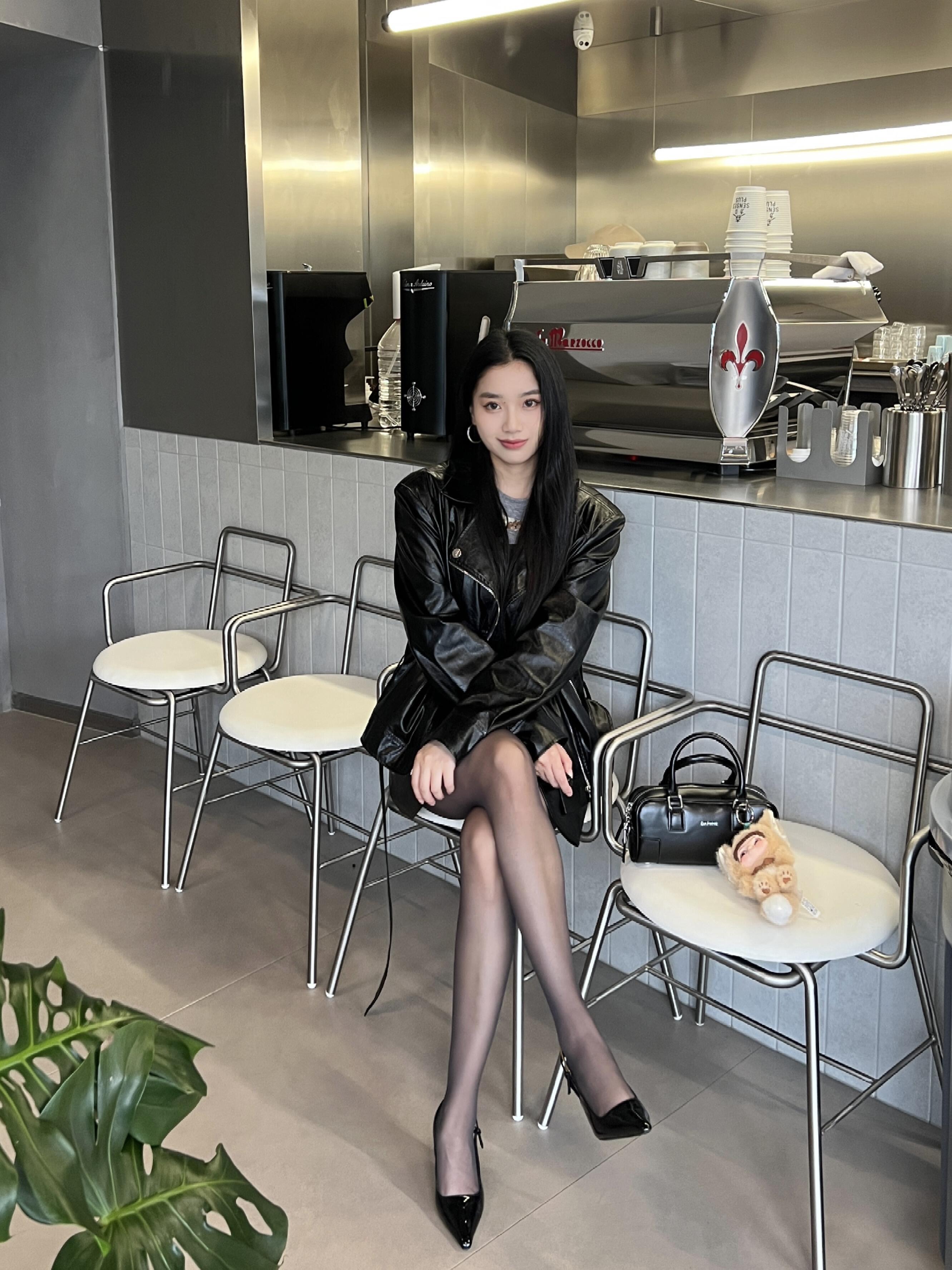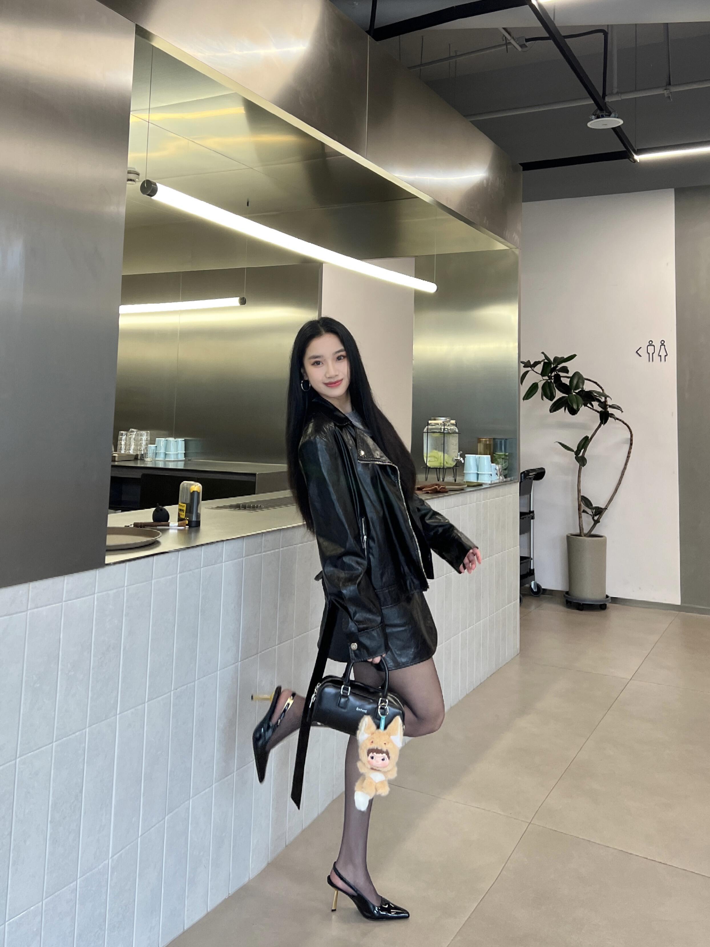 黑丝配皮衣高跟,又辣又A,松弛感狠狠拿捏~