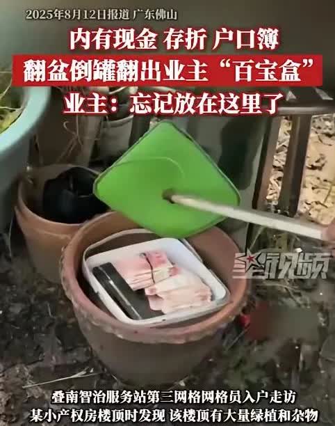 天上掉馅饼了!近日,广东佛山,一男子在天台检查时,看到几盆废弃已久的花盆满是积水,结果意外倒出一个饼干盒,男子打开后发现里面有大量现金、银行卡、存折等! 网格员后来联系上人家了,第二天两人就约在服务站碰头,那男的拎了面锦旗来。 整个过程中,没人逼他归还,也没人监控能拍清他手里拿了什么,他要真装兜里走了也没人发现,可他就偏偏原封不动交上来了。 有网友评论,我没有那么高尚,我会觉得这是老天对我的奖赏。 别说这是不劳而获,如果他不仔细检查,不踢那么一脚,又怎会知道有那么多横财?并且这也不是人家的救命钱财,完全就是多余的,多的都已经忘了,根本就想不起来了。 如果你觉得这样不好,那我问你,有那些突然离世的人,他们生前在银行存的钱,银行可会告诉你家里人呀? 有网友评论,选择归还我想是大多数人都会做多,不劳而获的钱财用着也不安心,有一句话,有得必有失。钱还是自己挣的花就开心。 有网友评论,虽然芸芸众生皆爱财,但是不要否认,有些人从来不取无义之财,无关贫富。 友友们,你们认为呢?