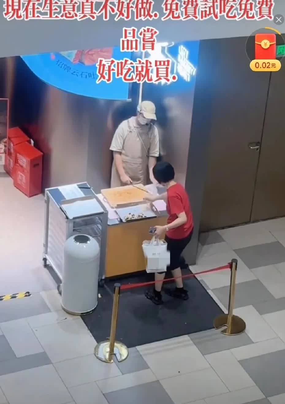 作为搞试吃的店家,在乎的应该是没有人尝试,有人在这试吃就有流量,也是变相揽客。