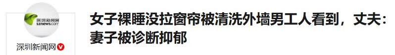 (第226)奇葩的事情真是多 今天看到新闻说,四川成都一公寓里,一名女子在家裸睡没拉窗帘,被清洗外墙男工人看到,他丈夫说他妻子现在被诊断出抑郁,我真是服了,你睡觉不拉窗帘,人家正常工作,又不是故意要看你,简直了! (F:665、287、935、683) (T:834、267、582、942、186)(另外536、257、824、932、167、185这几个挑顺眼的看看)