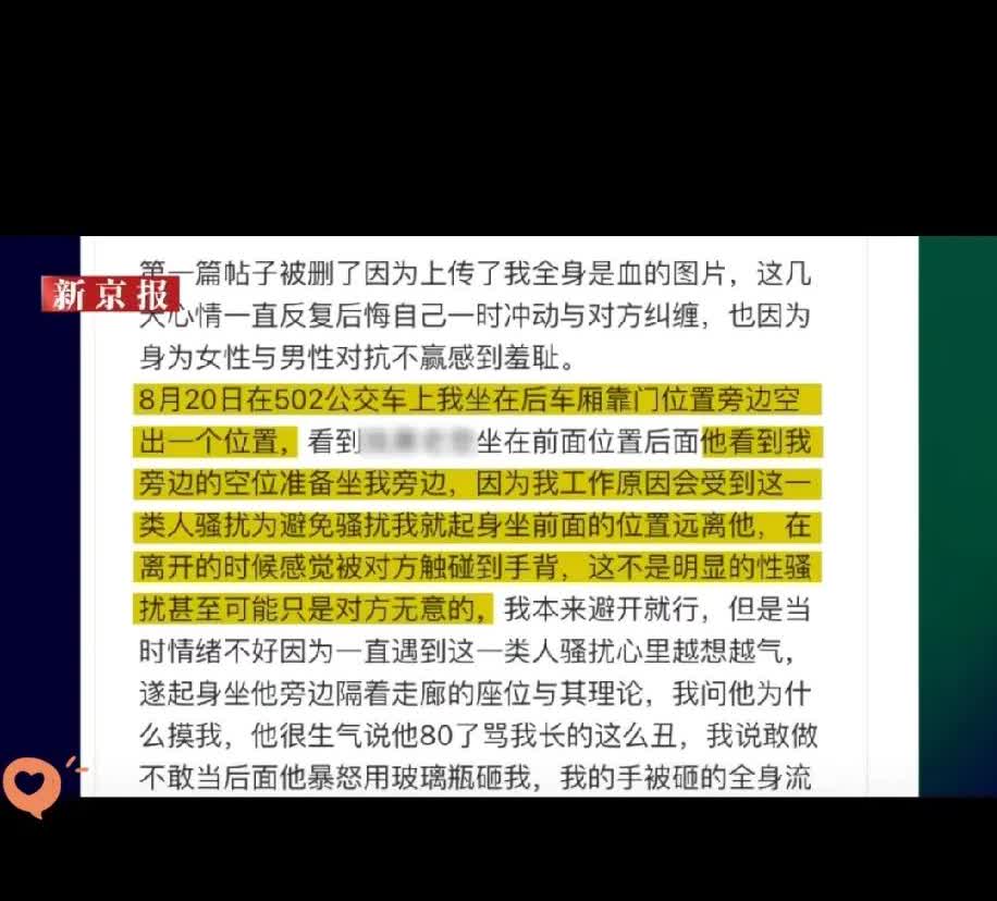 长沙公交上这事儿,真是看呆了!就因为下车时80岁大爷的手不小心蹭到手背,女子直接炸锅喊“性骚扰”,当着满车人把大爷骂得狗血淋头。谁能想到,活了大半辈子的老人哪受得住这冤枉气,当场急红了眼,抄起手里的玻璃瓶就往女子头上砸,瞬间见了血,好好的一趟公交直接变“战场”。 后来公交公司调出监控,明明白白显示大爷就是无意之举,这事儿从头到尾就是一场被情绪点燃的闹剧。真不是替谁说话,现在有些人碰到点事就先往“恶意”上靠,张口就来的指控,不仅会毁了别人的名声,更可能把自己推向危险边缘——大爷固然不该动手,但女子不分青红皂白的指责,不也是矛盾的导火索吗? 其实啊,人和人相处多份耐心和体谅,遇事先冷静问一句“是不是误会”,哪会闹到两败俱伤的地步?你们说,要是当时女子能先好好沟通,或者大爷能多忍一秒,这事儿会不会是另一个结局?