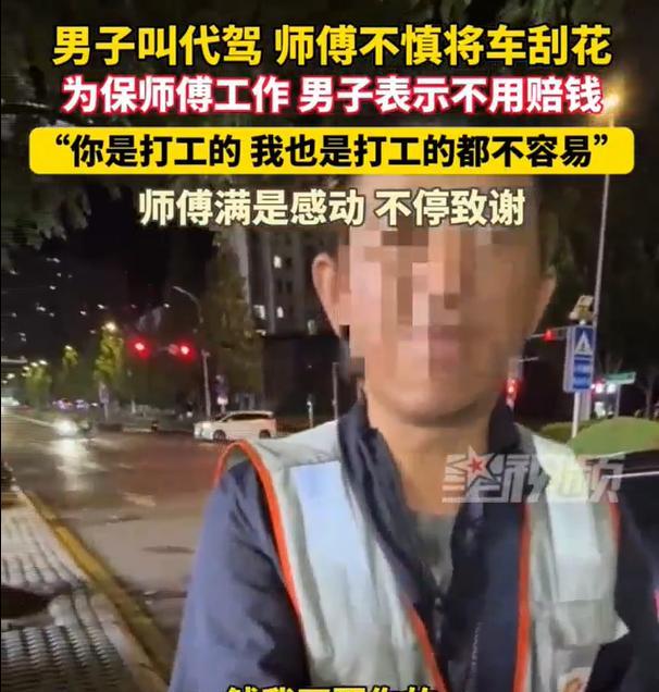 山东青岛。“我们都是打工的,大家都不容易”,人世间的感动不过如此,互相谅解、互相包容。一位代驾师傅,在给客户停放汽车的时候,不慎剐蹭到路边的石块,代驾师傅十分害怕,不清楚接下来要面临怎样的处罚。而车主则大度表示,大家都不容易,不需要你赔钱。 据star星视频8月23日报道称,一名男子在外喝酒吃饭,完事在代驾平台上喊了一位代驾师傅。在到达小区、停止到路边的时候,代驾师傅不慎剐把车轮毂给剐蹭到了。车主也是一位好心人,选择宽容这位代驾师傅,称“大家都不容易”。 8月22日晚,一位代驾师傅接单了,在把车主给平安送到目的地的时候,车子不小心发生了意外。 当时车辆已经驶进了小区,代驾师傅小心操纵着汽车停车入库。快要进线的时候,由于方向盘打的比较满,车轮不小心就剐蹭到路边的石块。 代驾师傅跟车主都赶紧下车查看,这一看,发现车辆剐蹭的还蛮严重的。车辆轮毂全部被刮花了,当时给代驾师傅都给看傻眼了。 代驾师傅内心十分慌乱,站在车旁着急得直跺脚。一来,不清楚稍后应该怎么跟车主交代;二来,自己错误操纵致使客户车辆剐蹭、磨损,将会被平台扣分,后面很有可能就不给自己派单了。 越想越着急,代驾师傅想着,还是先跟车主道歉吧。于是就跑到车主面前,一直鞠躬认错,并且表示自己一定会赔付的。 而车主在看完看自己的车损之后,轮毂确实已经被完全刮花了,就先安慰了代驾师傅的情绪,让他先不要着急。 然后车主继续说,自己平时开车,也是会剐蹭的,作为驾驶员,刮车在所难免,所以也不要因此丧失开车的信心。 看着代驾师傅非常虔诚的认错态度,车主又表示,自己不会走平台理赔的,因为走了平台,可能代驾师傅的工作就丢了。有了事故记录,对于他来说,影响较大。 另外,车主也表示,他也不会私下处理这事,如果私了让代驾师傅去维修,可能需要花费几千块钱才能解决问题。 “咱俩都是打工的,都不容易”,看着代驾师傅急的满头大汗、一直在搓手表示感谢,车主也伸出了友谊之手:“来,咱俩握握手,这次合作我也是比较满意的。” 车主安慰代驾师傅:好了兄弟,不必担心,你只要给我买一包烟就行,也不要有太大的心理负担,有这份视频为证,我真的不需要你来赔钱。 听到车主这番话,代驾师傅再次三鞠躬表示感激,他表达了自己的感谢,相信人间尚有温暖存在。也正是车主说的这些话,让他内心充满了温情。 “我现在就去给您买香烟”!带着感激之情,代驾师傅向小卖部跑去,此刻,他大概又再次相信,人与人之间,多一些信任跟理解,真好! 代驾师傅如果把车主的车辆剐蹭到了,拒绝赔偿,车主应该怎么维权呢? 如果代驾师傅在驾驶自己的车辆时,不慎剐蹭导致车辆损坏,车主第一可以找代驾师傅来索赔;第二可以找代驾公司来索赔。 根据《道路交通安全法》第七十六条规定,机动车发生交通事故造成财产损失的,首先由保险公司在机动车第三者责任强制保险责任范围之内予以赔偿。 如果本次事故责任属于代驾司机,首先就由代驾人员所投保的保险公司在责任限额内进行赔偿。 正如本案中的代驾驾师傅,其驾驶车主车辆发生剐蹭,导致车主车辆受损,代驾师傅则需要承担主要责任。可以由其名下的保险公司来进行赔偿。 最终,车主放弃了索赔,选择宽大处理,毕竟对方也不是故意为之,最后原谅了“年纪大、且实在不容易”的代驾师傅。握手言欢,或许还可以交个朋友。您对这位车主的抉择是否也大加赞赏呢,欢迎说出您的看法哦!
