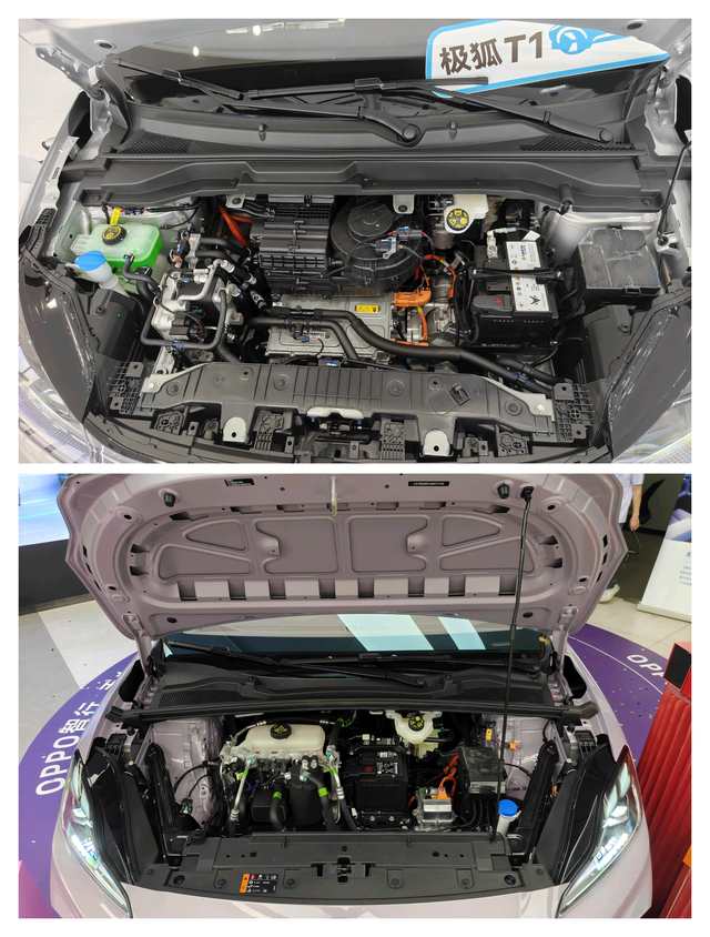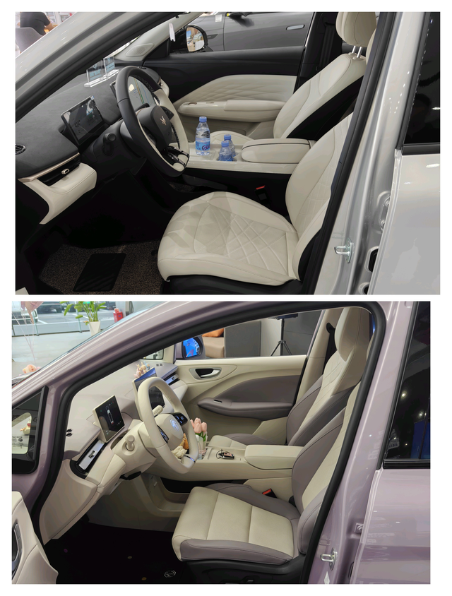 这两台车我都去体验了一下,申明一下因为T1目前是没办法试驾的,我只是试乘了一下,后面去名爵的时候,我也没去试驾,原因很简单,我会等下次T1可以试驾的时候,我在同时间试驾对比一下,说下这两台车给我的最大感受:他们的品质感确实都超出了这个价位应有的水平,但是MG4会偏女性多一些,T1会偏男性多一些。 1.外观:外观我认为T1>MG4,主要是车头大灯的科技感我认为是T1会更加好一些的。在这里要说下两者的车门,T1是那种半隐藏式的,MG4是很传统的门把手,它们的关门质感都是相对轻飘飘的,和星愿是差不多的,不如大众的ID3那种厚重感;其中T1的车门做工更差,门铰链用的不是锻造式的,而MG4是;虽然两者都不是一体式的车门,但是T1的门上发现了一个焊接不是很好的接缝,档次感一下子就下来了。 2.内饰:内饰MG4=T1,两者硬要说的话是MG4的颜色搭配会高于T1,尤其展厅里面mg4的紫色版本,确实看起来更上档次,但是两者都是硬塑料为主,MG4的前面仪表台的硬塑料设计感不如T1,T1的很多硬塑料都做了花纹设计,但是T1的硬塑料的耐刮性比较一般,已经可以看到上面的划痕了。两者都要吐槽的是放手机的地方的材质,两者的材质都很容易沾染灰尘,MG4的扶手箱没啥阻尼感。 3.空间: ①前面的发动机舱里面两者都是没有储物空间的,且两者都是没有液压挺杆的,都需要手动撑起,而且两者的机舱盖上面都是没有隔音棉的,可以说是半斤八两。 ②前排T1比MG4少了一个副驾驶的手套箱,T1的中央通道的储物空间也会比MG4要大一些,小包啥的可以直接放在这里,MG4是做不到这点的。 ③内部空间:两者的后排的腿部空间都挺大的,T1会稍微大那么一点点,我182的身高,大概有一拳四指左右,T1大概有一拳三指左右,都超出了我的预期,头部空间T1也会更好一些,两者都是扫头发的状态,但是T1因为遮阳帘位置会比MG4多出一指左右的头部空间;T1的前排座椅是支持全部放倒后和后排连接在一起的,但是我体验了一下我182的身高,躺下是比较费劲的,脚会被卡主,女生应该会比较舒适。 ④两者的后排都是全平的,但是T1的后排中间没有头枕,我觉得是有点可惜的,而且中间位置没办法放下来当个手枕,我觉得这个设计不够好。 ⑤后备箱:两者的后备箱空间目测是MG4更深一些,两者都是支持46比例的座椅放倒的,放倒后都算不上全平的,在后备箱盖板下面都有一个很深的储物槽,两者满足日常家用都是很够的。 总结:至于说配置以及驾驶感受,等我下周末有空再去体验完告诉大家吧!如果硬要做个总结:女性买MG4,男性买T1。