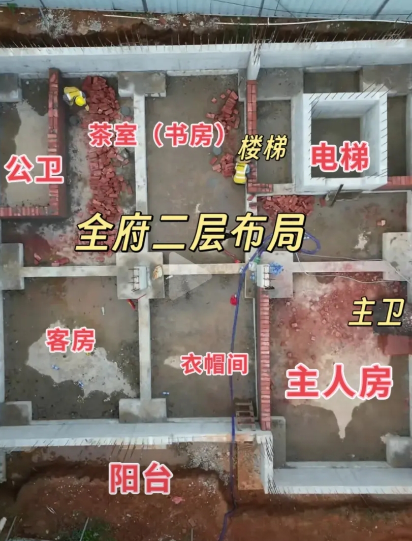 全红婵府第的建设进入二层楼剪力墙施工阶段了,可以看出二层的布局了,图一和图二,都