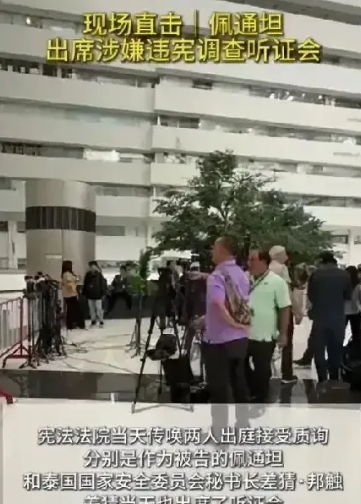 当地时间21日,泰国宪法法院针对被暂停总理职务的佩通坦涉嫌违宪一事,开了一场备受瞩目的调查听证会。
