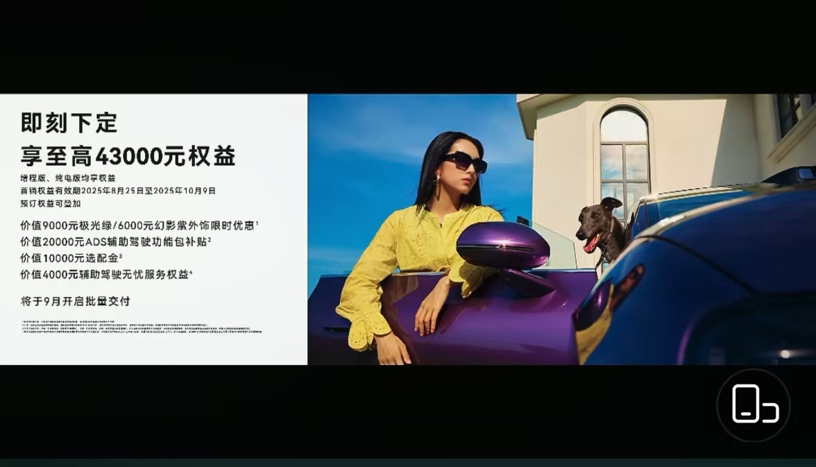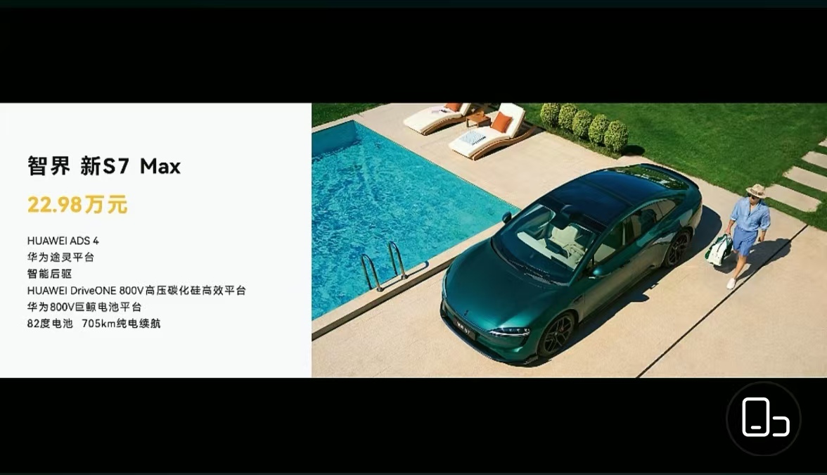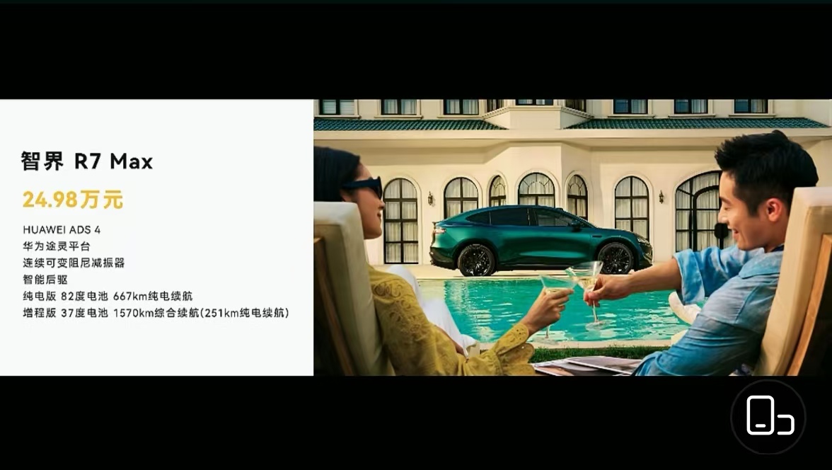 智界 R7 Max 版本(油电同价)售价 24.98 万元
