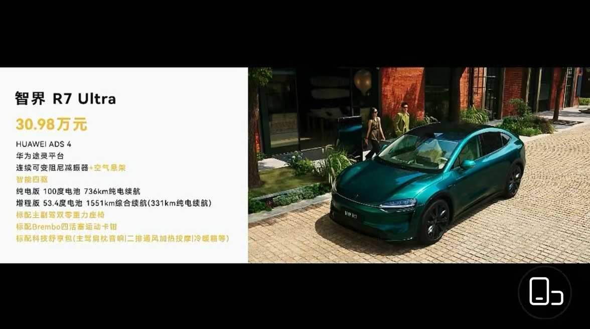 智界 R7 UItra 版本(油电同价)售价 30.98 万元