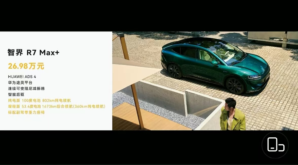 智界 R7 Max+ 版本(油电同价)售价 26.98 万元