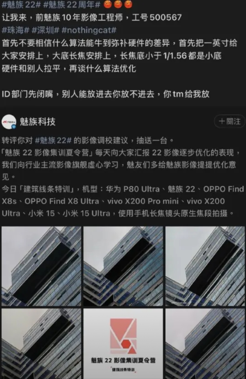 有博主也说得很明白,魅族22算法弥补不了硬件差异。看看魅族22,主摄不是一英寸的,潜望长焦据说是1/1.56....