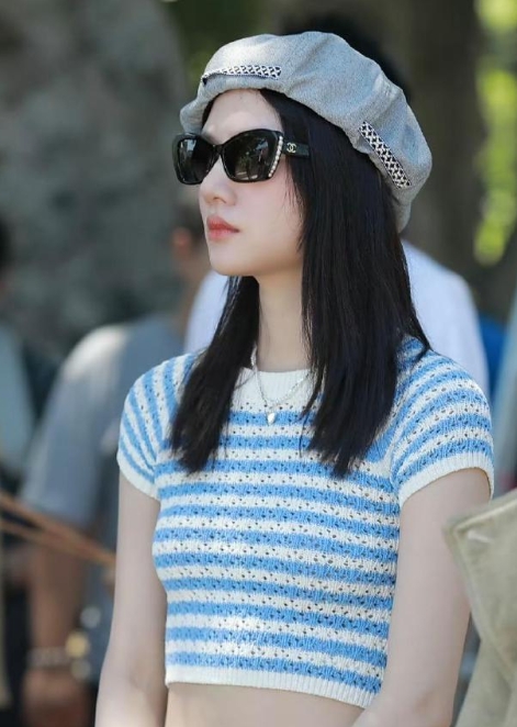 任敏新电影开机,当天她身穿条纹针织套装好美,人又瘦又白,妥妥的电影脸。