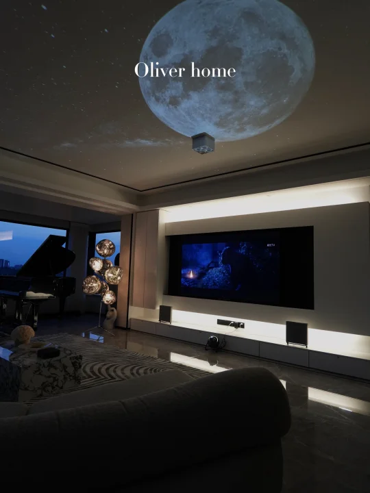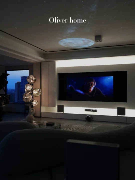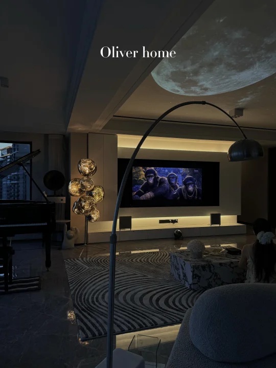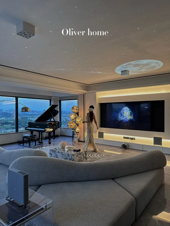 嗨,这里是小o的家 建面210m² 四房三卫两厅 作为一个资深电影爱好者,装修时就想过要把客厅打造成家庭影院,我对它的构想很明确——不仅要有一流的画质,声音系统更要做到声临其境,这个过程中我做了很多功课,最后决定使用无线分体式回音壁,每到夜晚,沉浸式的观影体验简直不要太好 沉浸式的家庭影院少不了有质感的环绕声系统,因为是精装房改造,没有留出上墙音响的位置,所以我选择了索尼HT-A9M2超旗舰家庭影院 它一共由四个扬声器组成,家里直接拥有了一套360°环绕声系统,而且可以灵活摆放,不占地、不收线,轻松实现隐藏式高级感 索尼的黑科技“360智能穹顶声场2.0”,可以生成多个幻象扬声器,在家看电影时能完美体验到影院般的穹顶环绕声效果,声音从四面八方涌来,看《沙丘》时沙虫破土而出的震动,或是《阿凡达》中森林细语的环绕,每一个方位的声音都清晰可辨,索尼的 AI语音增强技术3.0还可实时提取人声和对话,单独调整人声音量,可以更清晰地听到声音,放《奥本海默》这种对白密集的片再也不用担心听不清台词,即便音量调小也不丢失细节 更让我惊喜的是,搭配索尼电视使用时,还能启动中置声场同步模式2.0,电视本身成为中置扬声器,让人声对白更加扎实饱满,声画合一的感觉特别震撼 除了看电影,用它听歌也是一场听觉盛宴,支持杜比全景声、DTS:X以及IMAX Enhanced等高规格格式,各种音乐从它的Hi-Fi级声学中传出,都让耳朵做了一场spa~ 索尼让我真正实现了“把影院带回家”,这个家也因为有了声音的温度,多了好多笑声与回忆,最近索尼还有国补活动,入手这些高端影音设备相当划算,轻松把影院生态搬回家。❤