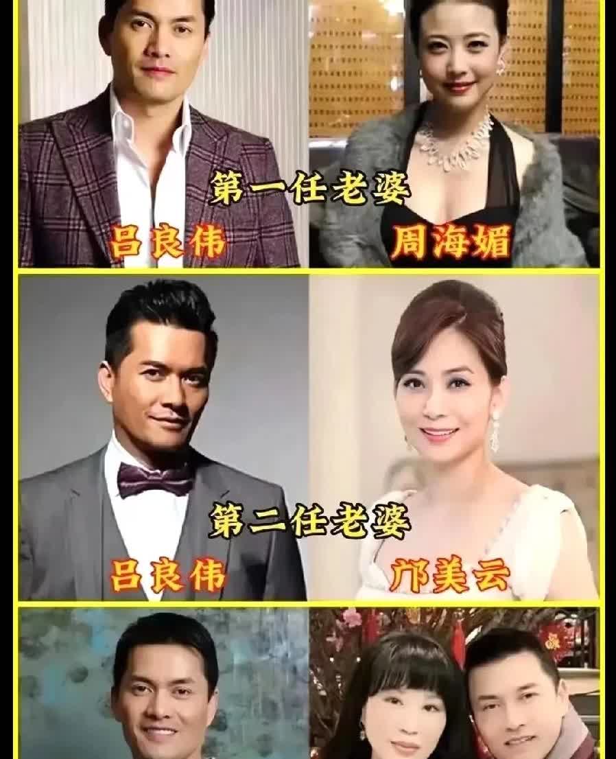 70岁的吕良伟, 这辈子吃得太好了! 第一任老婆:周海媚 1985年,30岁的吕良伟因为拍摄《小岛风云》认识了周海媚。3年后,吕良伟生日这天,他拉着周海媚上教堂宣誓结了婚。 吕良伟是个传统的男人,婚后小夫妻还跟父母住一起,他父母也很传统,结果年轻媳妇周海媚与公婆的矛盾越来越多,只能离婚,婚姻只维持了8个月。 第二任老婆:邝美云 两人性格相投,相识7年后,1996年,41岁的吕良伟娶到了香港人称“励志姐”的邝美云,她比吕良伟小8岁,是初婚。吕良伟是个传统男人,邝美云却极其好强,婚后他们争吵不断,8个月后也离了。 第三任老婆:杨小娟 杨小娟贵州人,北京大学经济系毕业,有颜有钱,1998年在一次饭局上认识了吕良伟。 她的性格豪爽,一下子就吸引了吕良伟,他不仅主动要了杨小娟的电话,还自作主张送上求婚戒指,杨小娟收下戒指却说结婚要考虑一下,2年后,才终于答应。 2001年,46岁吕良伟迎娶30岁杨小娟,婚后他们有一个儿子,叫吕善扬。 难以想象,吕良伟是有多大的魅力,竟然能够收获3大女神的青睐,艳福不浅,他这一辈子真是很值了。