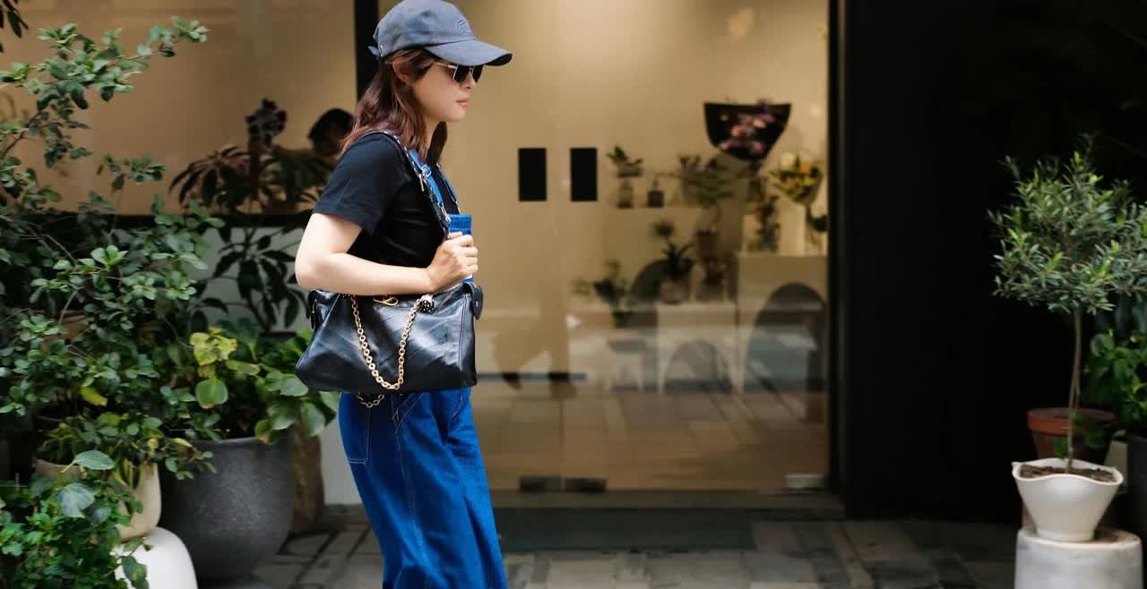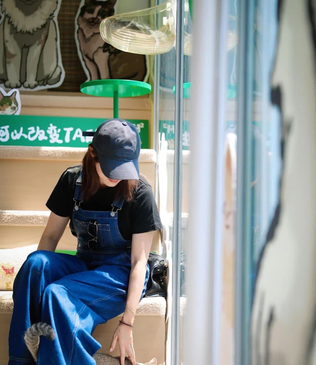 孙俪逆生长,最近穿搭以休闲风为主,看上去更有少年感了! 比如这一次就选择了黑色T恤,搭配一条宽松的背 带牛仔裤,再加上球鞋棒球帽增加街头感,超减龄!