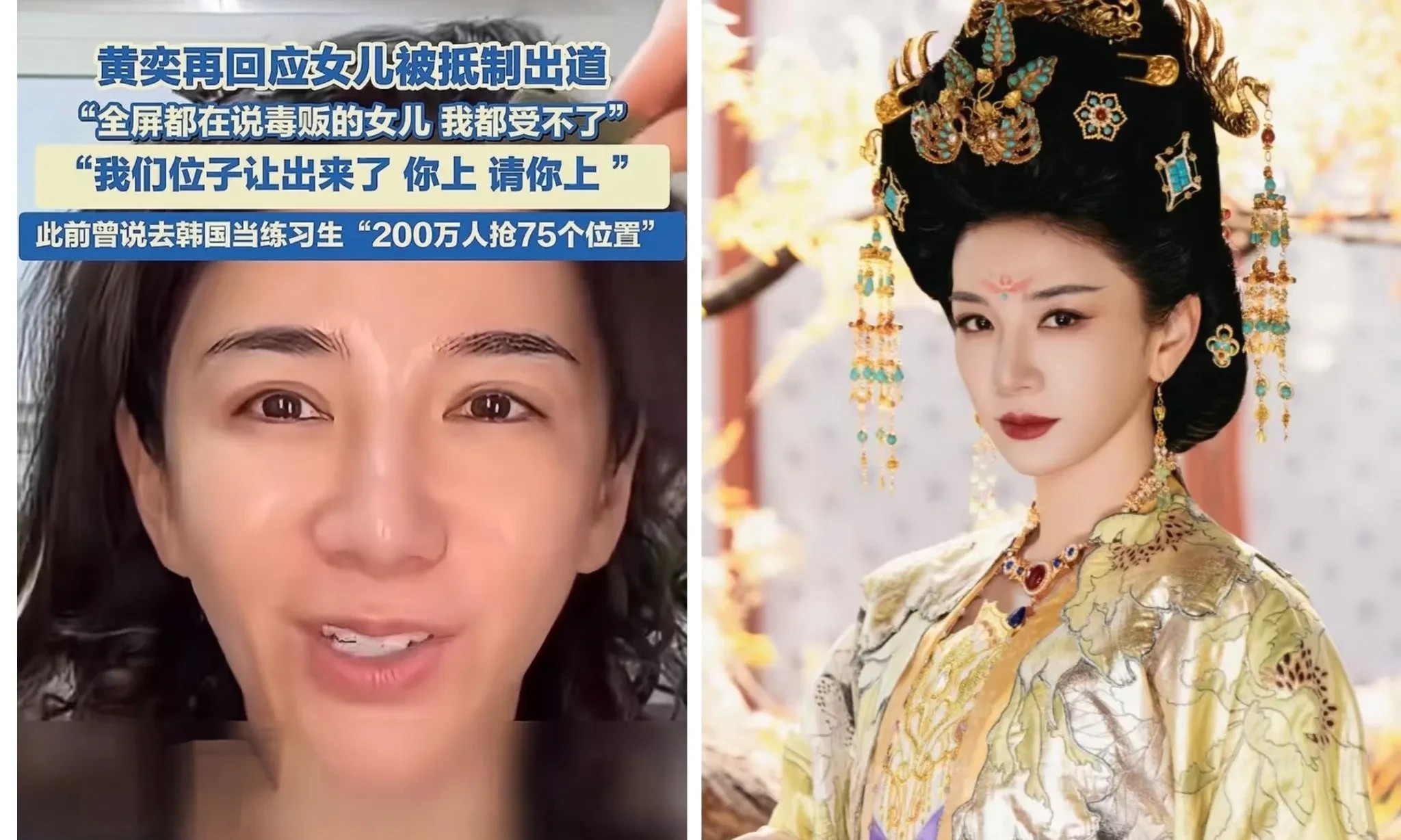 一个争议,三方受伤! 黄奕怎么也没想到,因为自己的一句话事业上遇坎、女儿梦想受阻、剧组心血被牵连。 黄奕在回应女儿被抵制出道的时候,委屈地说 “全屏都在说毒贩的女儿,我都受不了” ,还赌气表示 “我们位子让出来了,你上,请你上” 。 本意是想给女儿讨公道,可这火上浇油的架势,直接让舆论炸了锅。 新剧《子夜归》开播,黄奕因为 “客串皇后” 被追着抵制!明明是3.2亿打造的国风大剧,场景美到央视点赞,就因为她这争议,观众直接 “快进避雷”,播放量、口碑双双受挫。 更惨的是待播剧《长风起》,刚杀青就被网友喊话 “剪戏份”“别播了”,这连环暴击,估计黄奕想要重新翻红更是难上加难了! 大家觉得 “父母过错该不该牵连孩子身上”?当妈的护子心和公众的底线,你占哪一边?