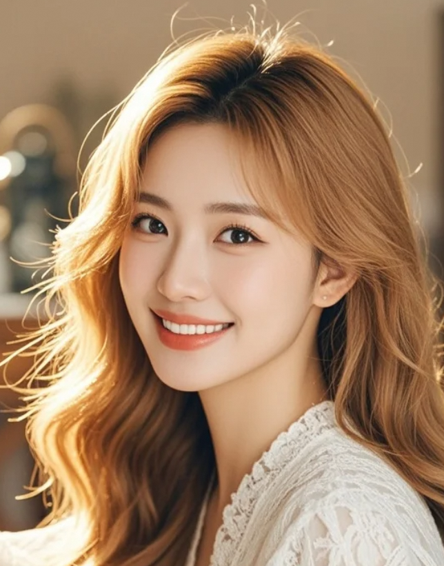 高清镜头下长卷发美女歪头微笑的迷人时刻