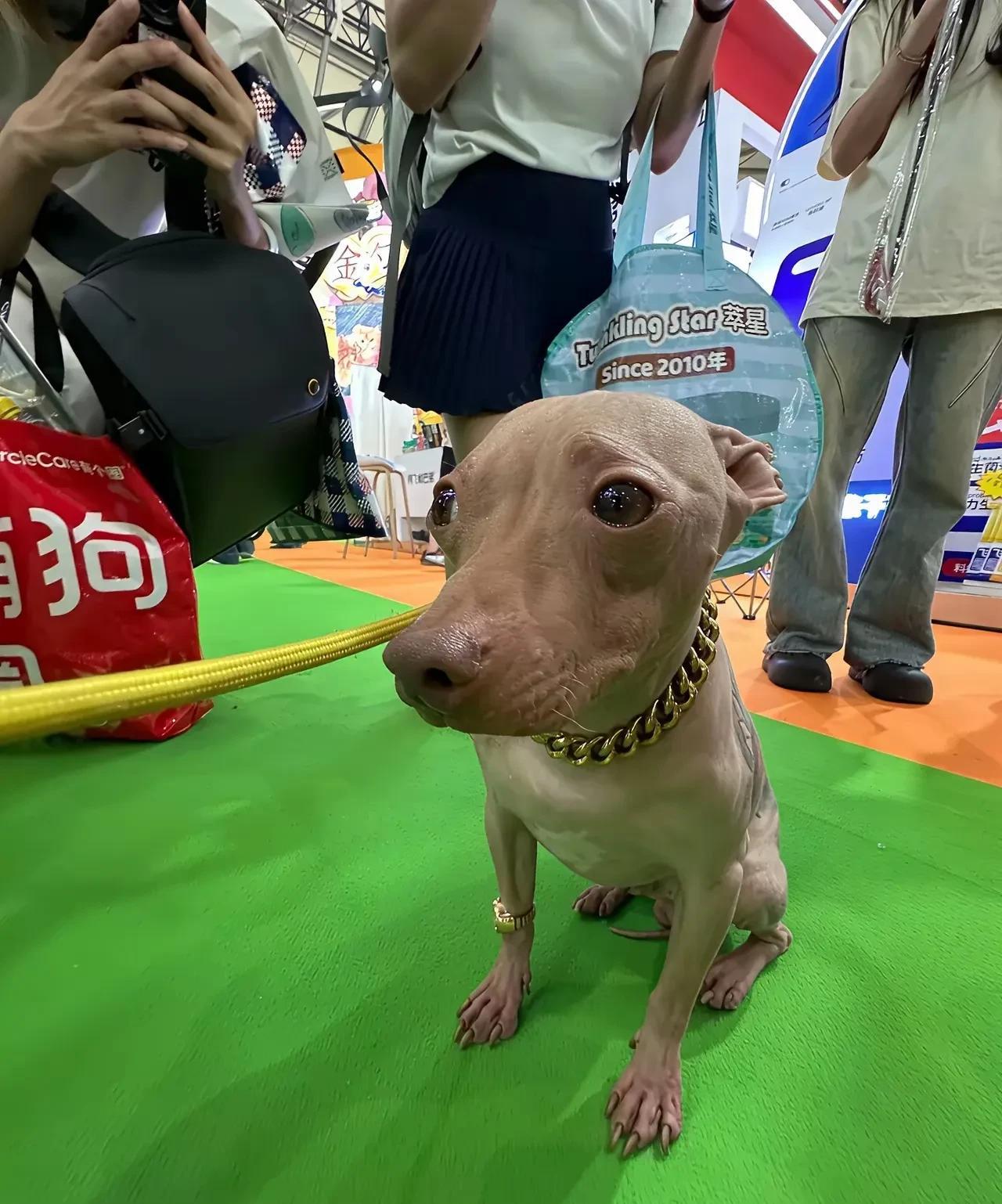 亚宠展上那纹身狗狗看着真让人心疼!身上大面积都是真纹身,想想就知道多疼。跟人互动