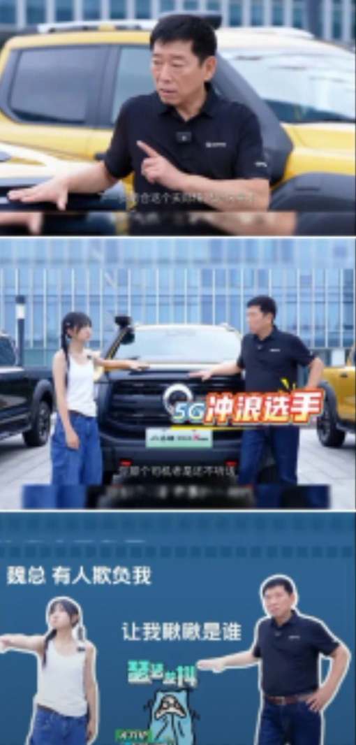 大力仑终于被长城约去见到魏总了,小姑娘很单纯,经过这两年磨练,不怯场,不过对话不是很聪明的样子 魏总问她你这两年开的那辆大力仑长城炮怎么样?结果她说没感觉,因为只坐车了,没驾照,魏总挺尴尬,不过也很厉害,马上说“大力仑是因为其他工作太忙 没来及的”,这样吧,你现场教我怎么喊长城炮,大力仑这一嗓子很熟悉“耶,我的梦中情车,长城…炮”,魏总说赶紧学车拿驾照,你那个司机不听话,我是老司机,给大力仑当一回司机! 魏总也懂流量了,现在这年头,只要有流量,就必须要抓住。周老板,就没这个待遇