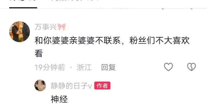 今天一大早,田静就和网友怼起来! 有网友说: 和你亲婆婆不联系,粉丝们不喜欢看!