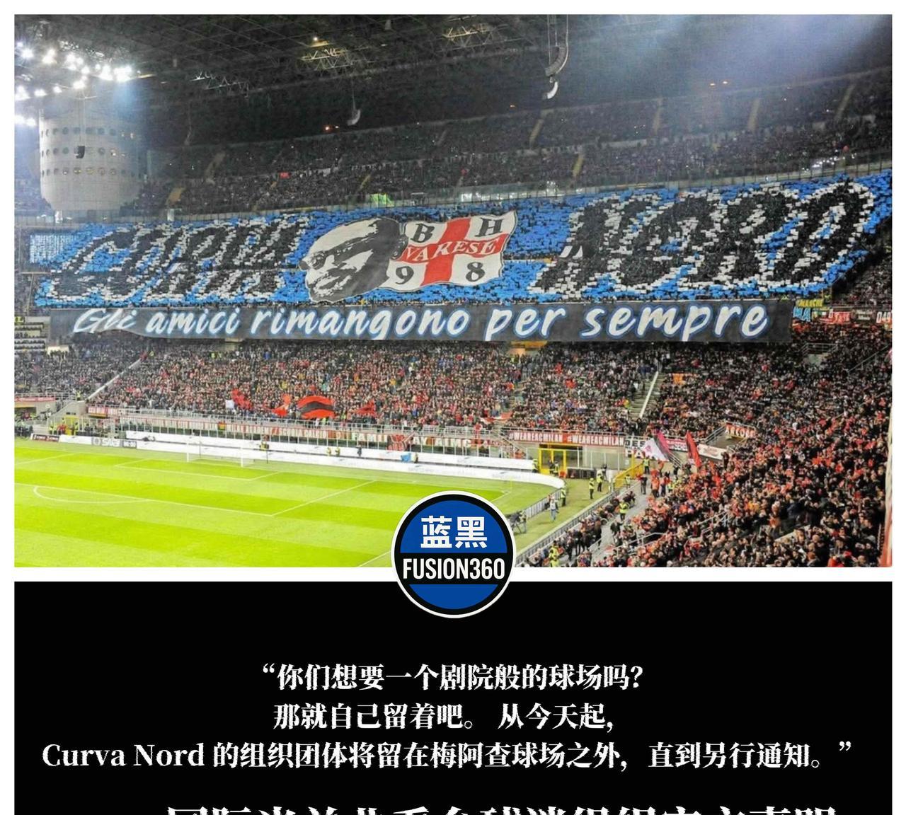 北看台宣布抵制梅阿查,让俱乐部拥有剧院球场 从今日起,国际米兰北看台的组织化球迷