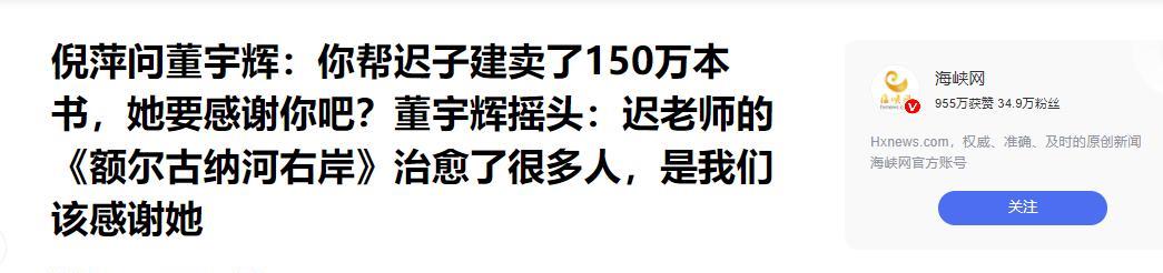 一次,倪萍问董宇辉:“你帮迟子建卖了150万本书,是她的贵人,她感谢你了吧?”董宇辉忙说:“倪老师,可不敢这么说,迟老师的书治愈了很多人,她才是我们大家的贵人。” 麻烦各位读者点一下右上角的“关注”,留下您的精彩评论与大家一同探讨,感谢您的强烈支持! 董宇辉的直播间灯光温暖,他举起《额尔古纳河右岸》,封面驯鹿剪影在柔光下仿佛跃动。 “这本书,”他声音不高却充满魔力,“我读了三遍。” 他描绘月光穿透林间洒在起舞的萨满身上。 驯鹿在清晨冷雾中低头寻苔藓,篝火旁人们歌唱至天明。 数百万观众瞬间被带入大兴安岭的密林。 库存飞速清零。 这本曾获茅盾文学奖、一度沉寂的作品,创下单场150万册销售纪录。 累计销量突破230万册,出版社紧急加印450万册。 一场风暴由此掀起。 文学圈顿时喧哗。 老派评论家痛斥经典沦为“叫卖品”,亵渎文学神圣性。 担忧严肃文学的深度需网红口才证明。 年轻读者反驳。 没有董宇辉充满画面感的讲述,多少人会翻开这本名字拗口、题材冷僻的“茅奖”作品? 风暴中心,作家迟子建异常沉默。 这份沉默,或许源于她风雪交织的人生。 六岁被短暂送养,幼小心灵刻下分离之痕,成为《北极村童话》揪心的底色。 1986年寒冬,《北极村童话》即将付印。 父亲猝然离世,未能见到女儿文字成铅字。 更大风雪在39岁降临。 丈夫车祸身亡,留她独面刺骨凛冽。 两次至亲永别,巨大悲痛被摁进文字,熬成《世界上所有的夜晚》这样泣血之作。 她习惯将汹涌情感沉淀笔端。 面对爆红,她仅以长信回应董宇辉。 字里行间是克制的感动与对后辈“前路漫长”的期许。 如窗外无声飘落的雪。 董宇辉的讲述点燃广泛共鸣,因为他精准触动国人血脉中的文化密码。 在钢筋水泥都市樊笼里,书中那片原始山林,成了无数疲惫心灵的喘息之地。 他点出书中鄂温克人对生死的豁达、 严酷环境中,死亡如秋叶飘零般平常。 人们平静接受逝去,视其为自然循环,深信逝者如风,从未远离。 这份坦然暗合庄子“鼓盆而歌”的哲思,为焦虑现代人推开透气之窗。 这种对人生须臾与宇宙永恒的敬畏,是深植文脉的共通心跳。 《额尔古纳河右岸》借少数民族生存史诗,再次叩响这份集体记忆。 《额尔古纳河右岸》的爆火,无法简单归结“文学赢”或“流量赢”。 它是一场充满张力的共舞。 董宇辉的直播间以其海量受众和独特感染力,他的魅力与讲述如同高效舟楫。 将艰深纯文学作品渡向可能永无交集的普通读者,完成惊人“破圈”。 喧嚣过后,留住读者、引发思考的,终究是作品本身的重量。 迟子建深厚的文学功底经得起流量冲刷的基石。 没有这份沉甸甸内核,再大声浪也是转瞬泡沫。 事件映照数字时代文学传播的巨变。 传统书评、期刊固然重要。 但直播间、短视频等新媒介也是不可忽视的渠道。 严肃文学需探索善用这些工具。 董宇辉超越销售员,是“文化摆渡人”。 通过个人化解读与真挚情感共鸣,拉近经典文本与大众心灵。 这提示推广严肃文学需要更多连接文本灵魂与读者内心的“译者”。 迟子建与董宇辉,一位用文字在风雪中雕刻生命。 一位在直播间用情怀点燃星火。 他们的“相遇”成就奇迹。 这场争论的价值在于促使反思。 在信息碎片化洪流中,如何让真正有价值的文学抵达更广阔心灵? 它揭示一种可能。 在坚守文学独立品格与精神深度的前提下,拥抱新传播方式。 让好故事穿越喧嚣,在更辽阔土地生根。 这不是流量独奏,也不是文学退守。 而是一曲文学内核与时代传播共振的交响,为经典在当代的焕新,谱写着未完乐章。 主要信源:(海峡网——倪萍问董宇辉:你帮迟子建卖了150万本书,她要感谢你吧?董宇辉摇头:迟老师的《额尔古纳河右岸》治愈了很多人,是我们该感谢她)