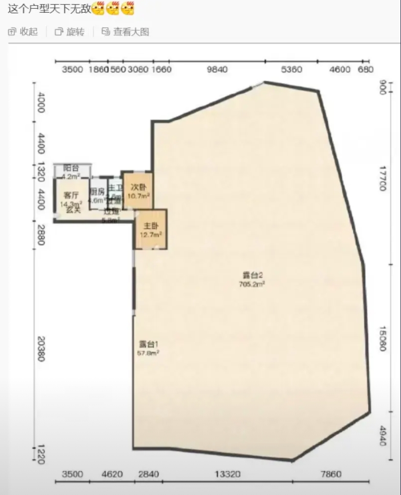 这是酷家乐的户型吧, 外面那么大是做外景用的