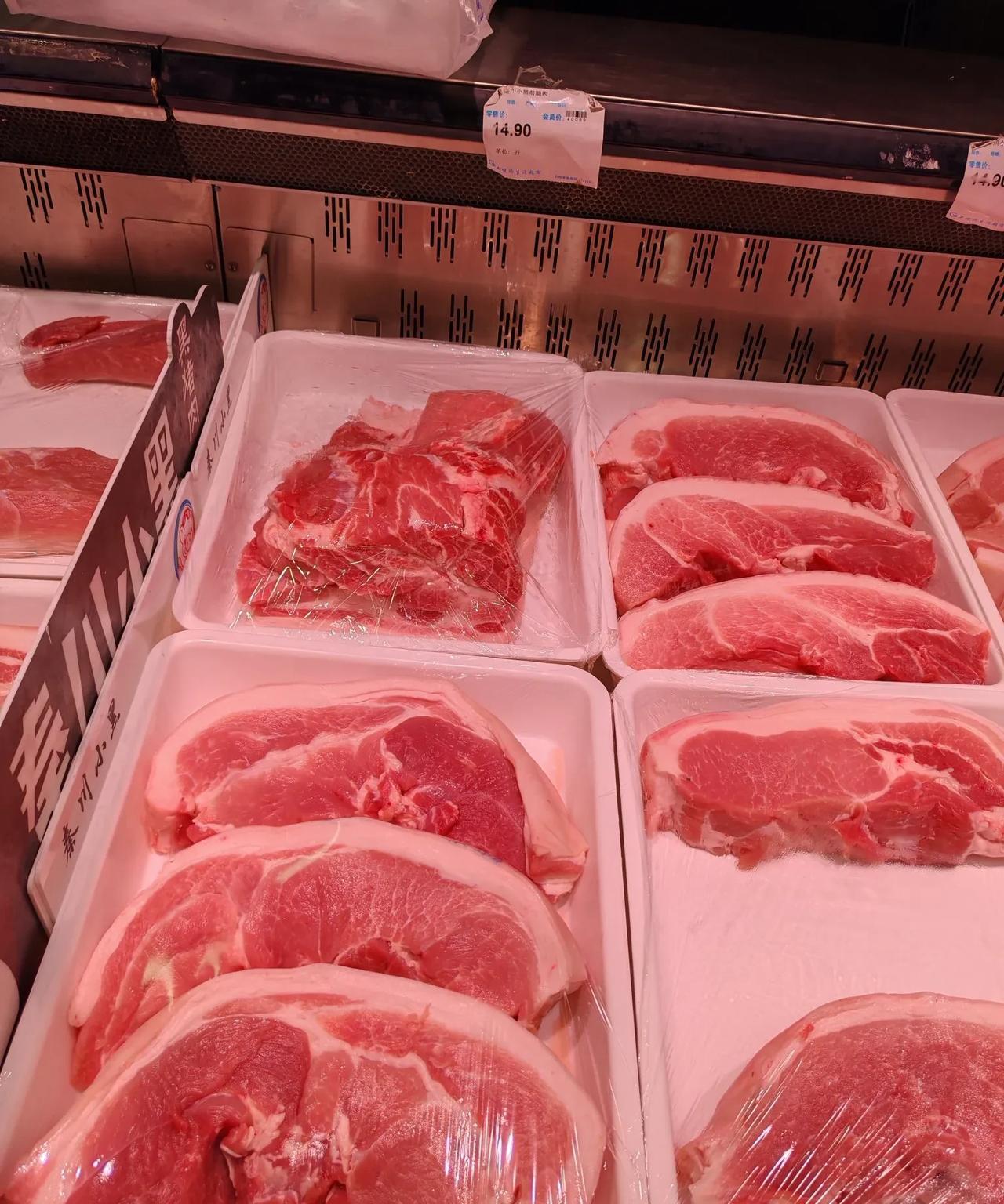 网上说猪价跌破6元,养猪户告急 今天我来求证一下西安市场上的猪肉情况,这是位于北郊的一大型生鲜超市,看看猪肉具体是个什么情况? 超市里一如既往的人少,零零星星的顾客,我来到生鲜区看了一下,前腿13.9元,后腿14.9元,五花肉16.9元,里脊肉18.9元,排骨27.9元,猪肝9.9元,猪前肘8元,猪后肘6.5元,龙骨13.9元,大骨头9.9元。 不好意思拍,就拍了这三张图,网上说的猪价连连下跌,但在西安市场上猪肉价格没有明显感觉,除了猪肘子便宜,其他肉品都是正常价,已经维持了很长一段时间的价。 这个情况,是说明网上猪价下跌情况不属实,还是说西安的消费力高呢?朋友们,你们那里的猪肉行情如何,分享一下。 #西安身边事#